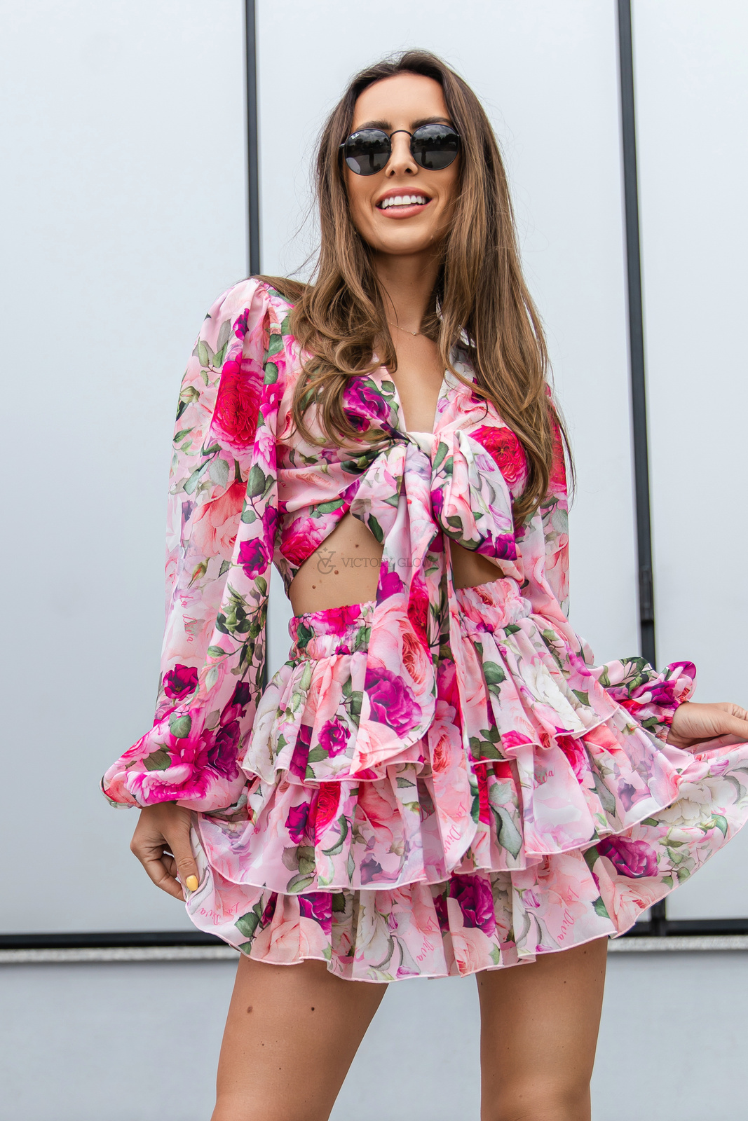 Komplet La Diva spódnico-spodenki bluzka różowy kwiatowy wzór