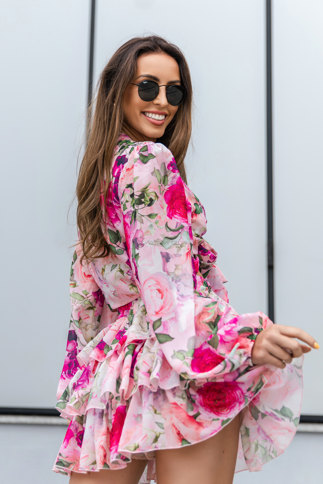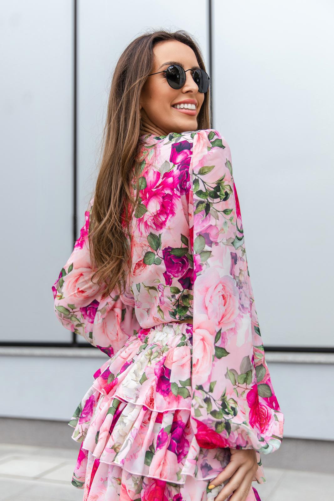 Letni komplet wykonany ze zwiewnej tkaniny w kwiaty, to doskonały wybór w upalne dni.