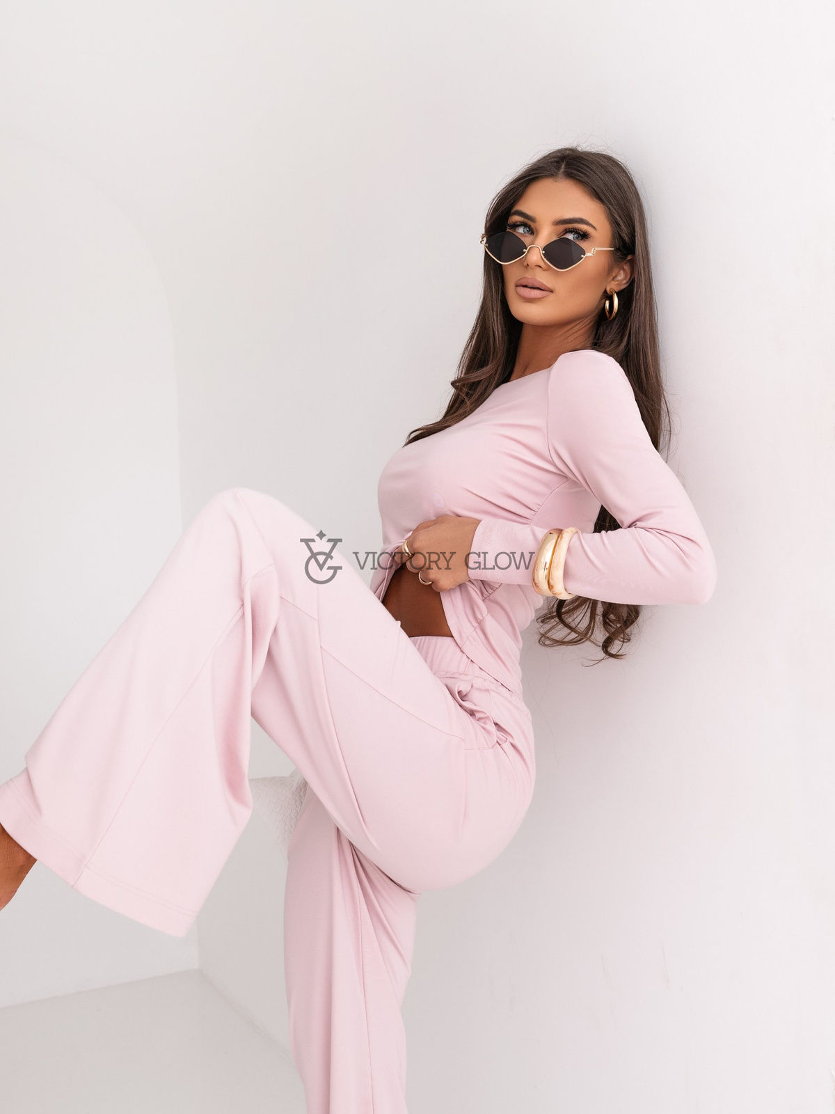 - Komplet: dopasowana bluzka z długim rękawem i szerokie spodnie
