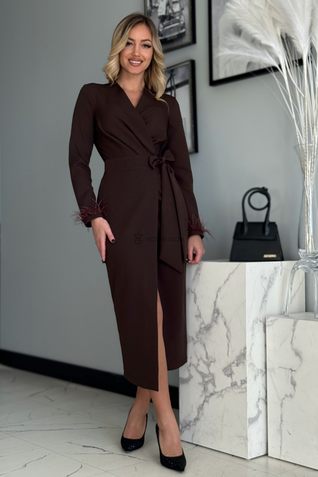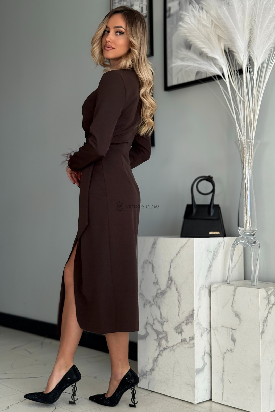 Kopertowa sukienka midi z piórkami Nicol czekoladowa