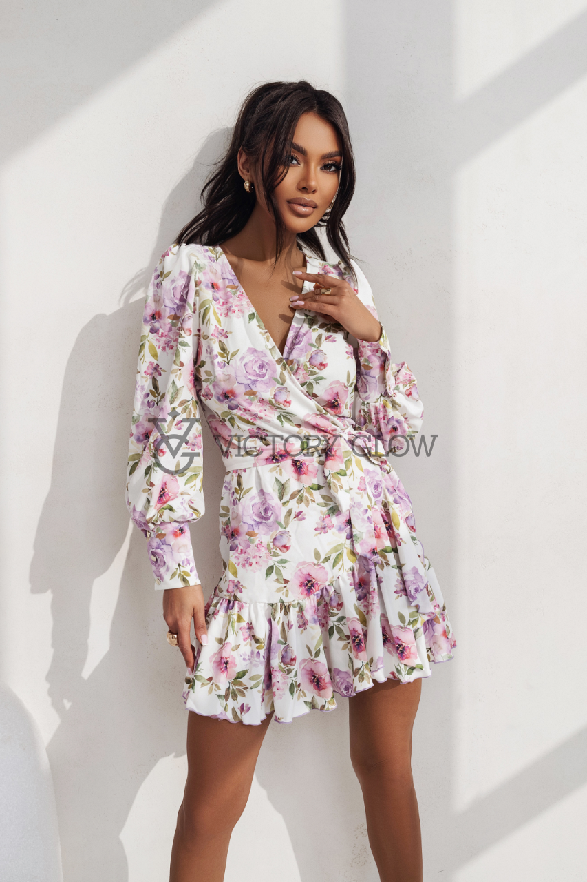 • Sukienka z założeniem kopertowym, długie rękawy. Z nadrukiem.