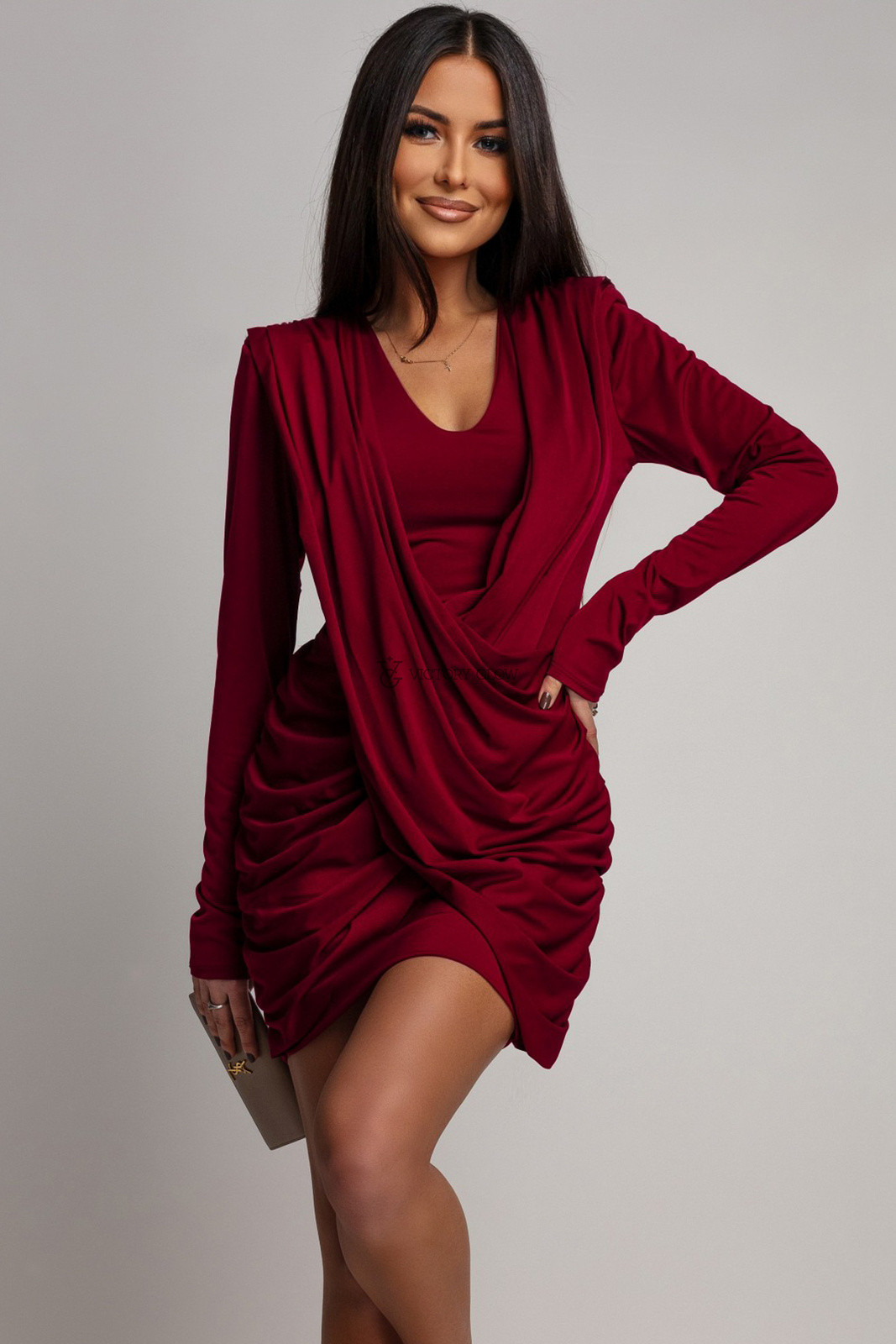 Kopertowa sukienka z drapowaniem Sandra bordowa