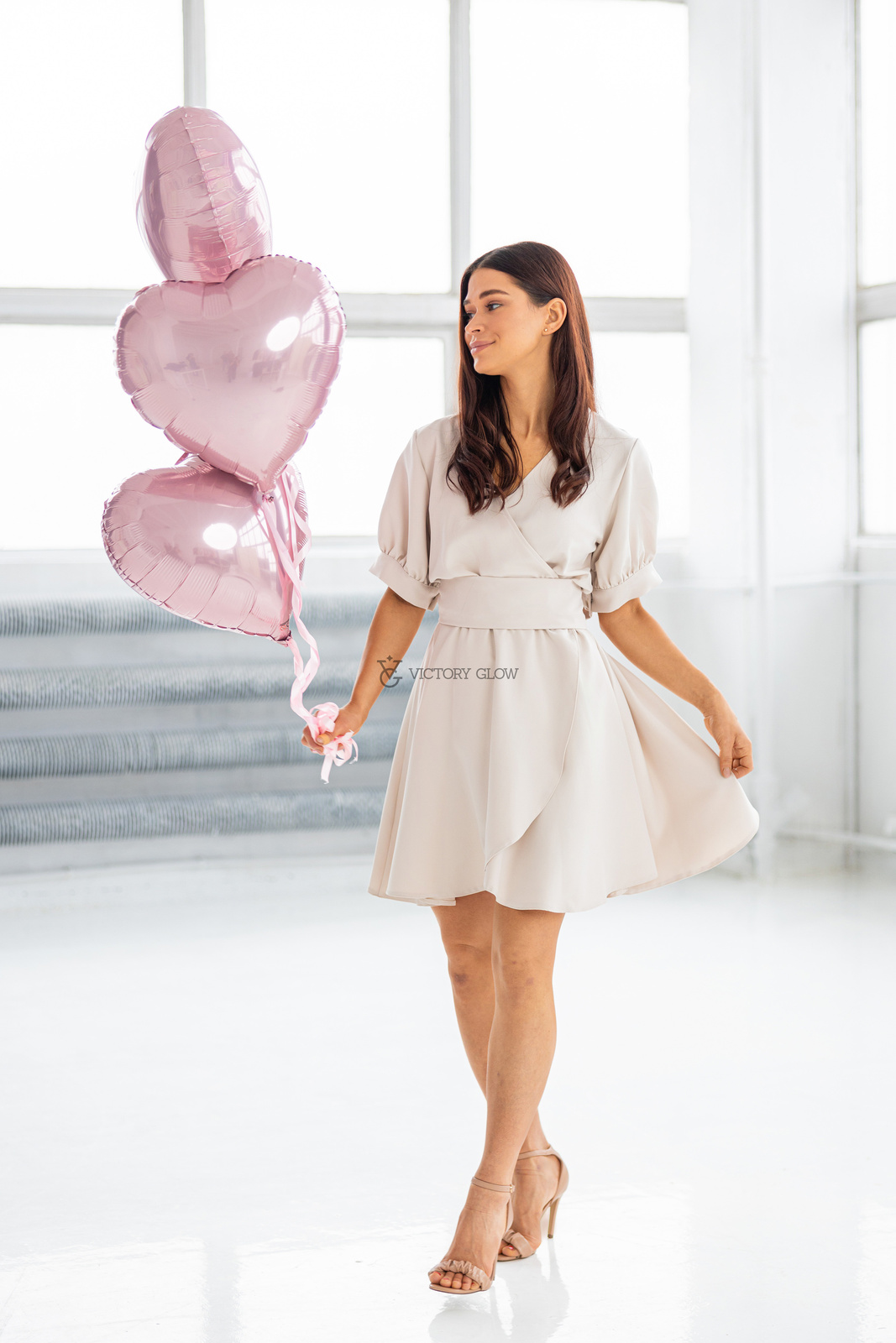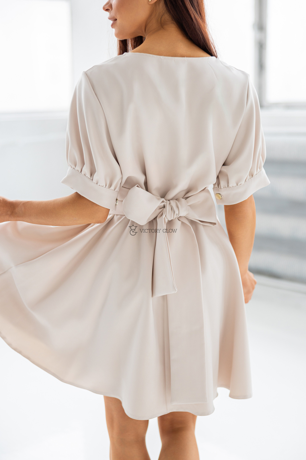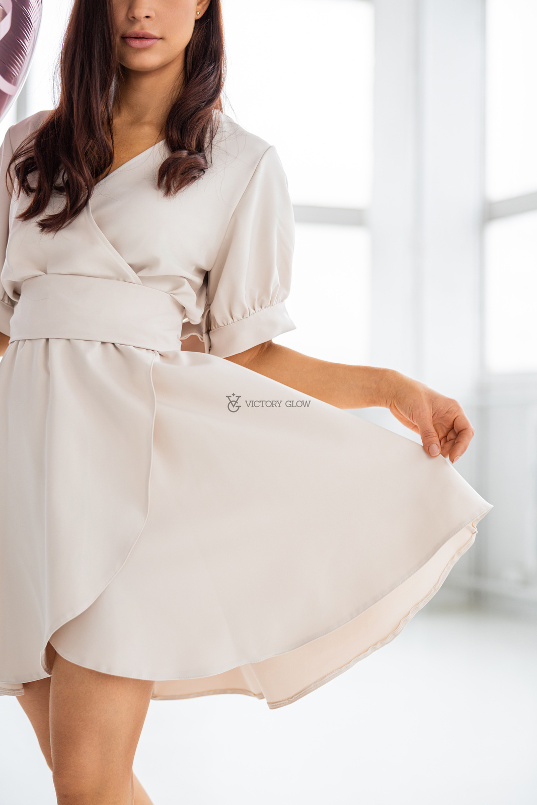kopertowa sukienka z krótkimi rękawami Sybill beżowa