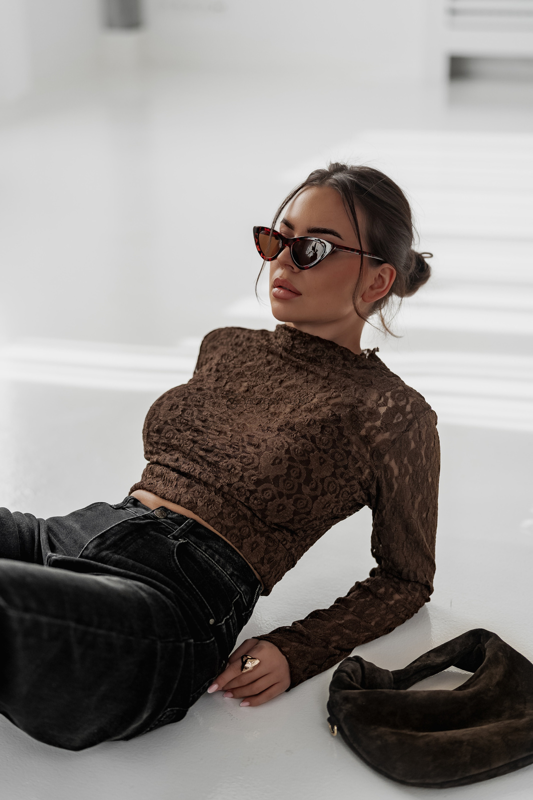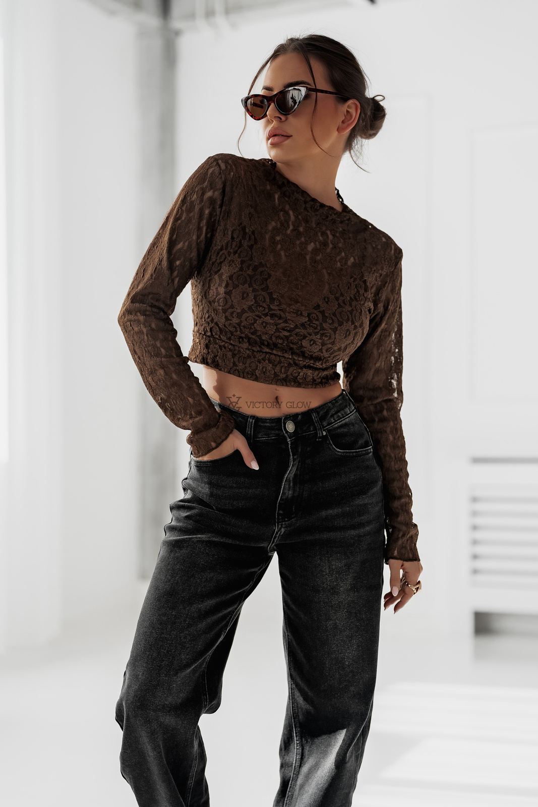 Koronkowa krótka bluzka Marti czekoladowa