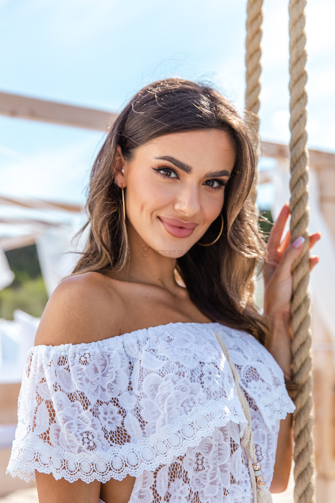 - Koronkowa sukienka hiszpanka w stylu boho z falbanami
