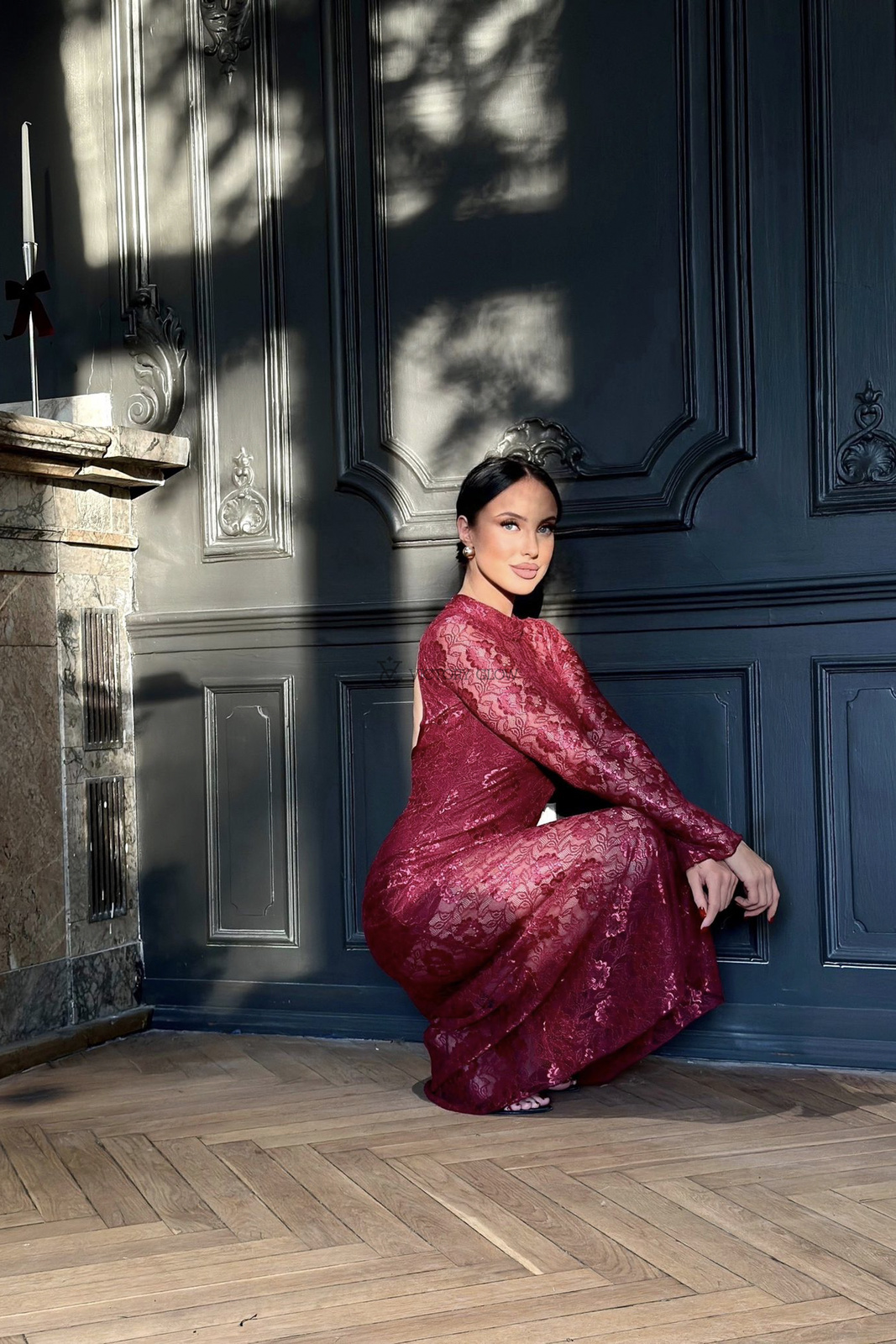 Koronkowa sukienka koktajlowa midi Monica bordo