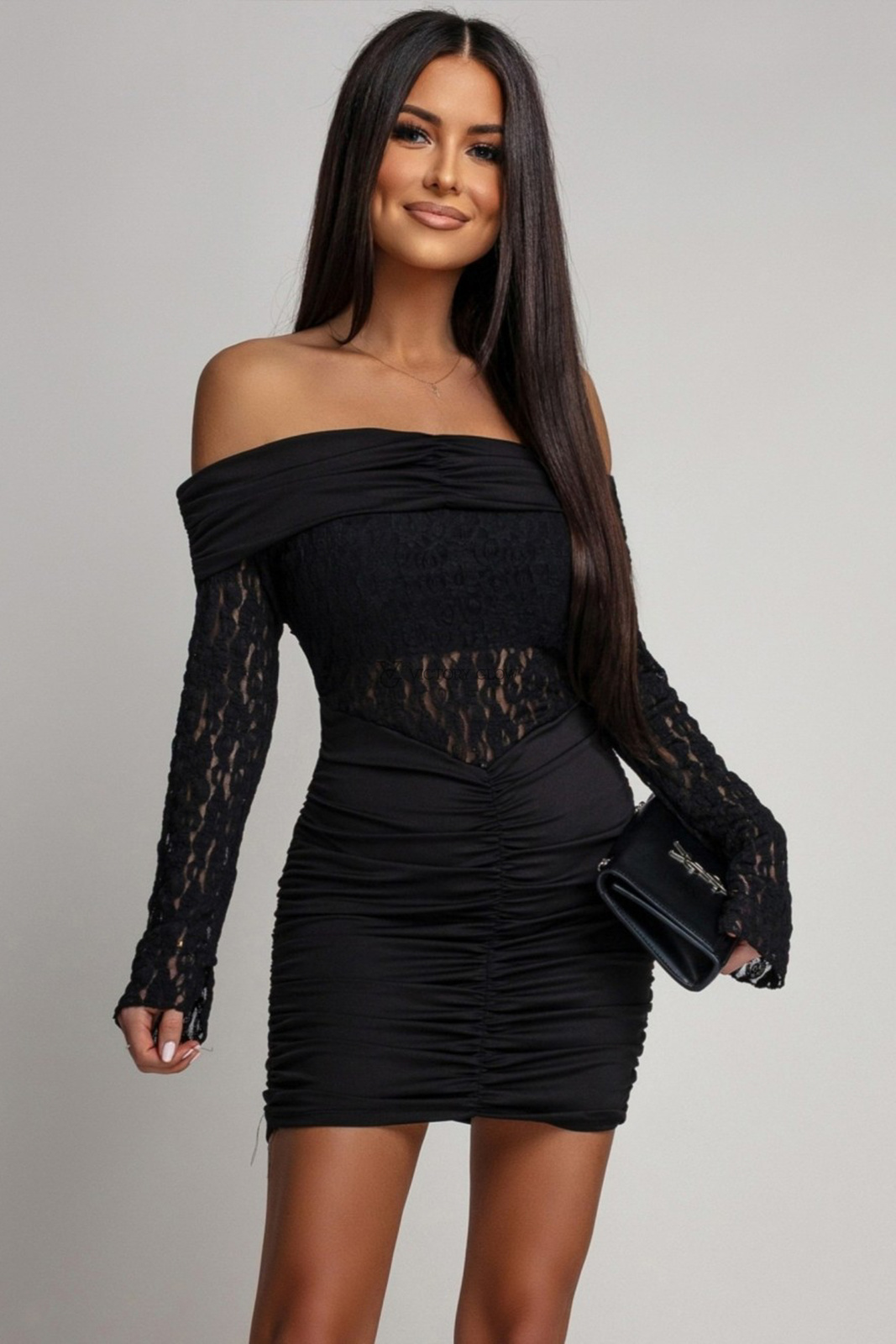 Zmysłowa i kobieca - taka właśnie jest nasza sukienka mini z koronki. Wykonana z wysokiej jakości, delikatnej koronki, zachwyca swoim subtelnym wdziękiem i elegancją.