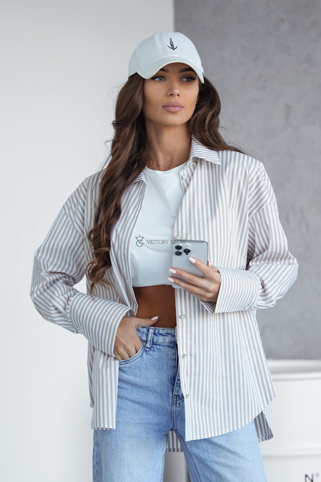 Koszula oversize w beżowe paski Margot