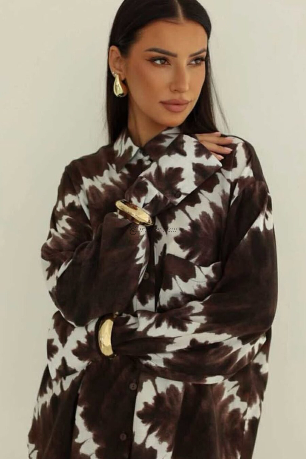 Koszula damska Pola to model, który przyciąga uwagę unikalnym, dekoracyjnym wzorem i kobiecą formą.