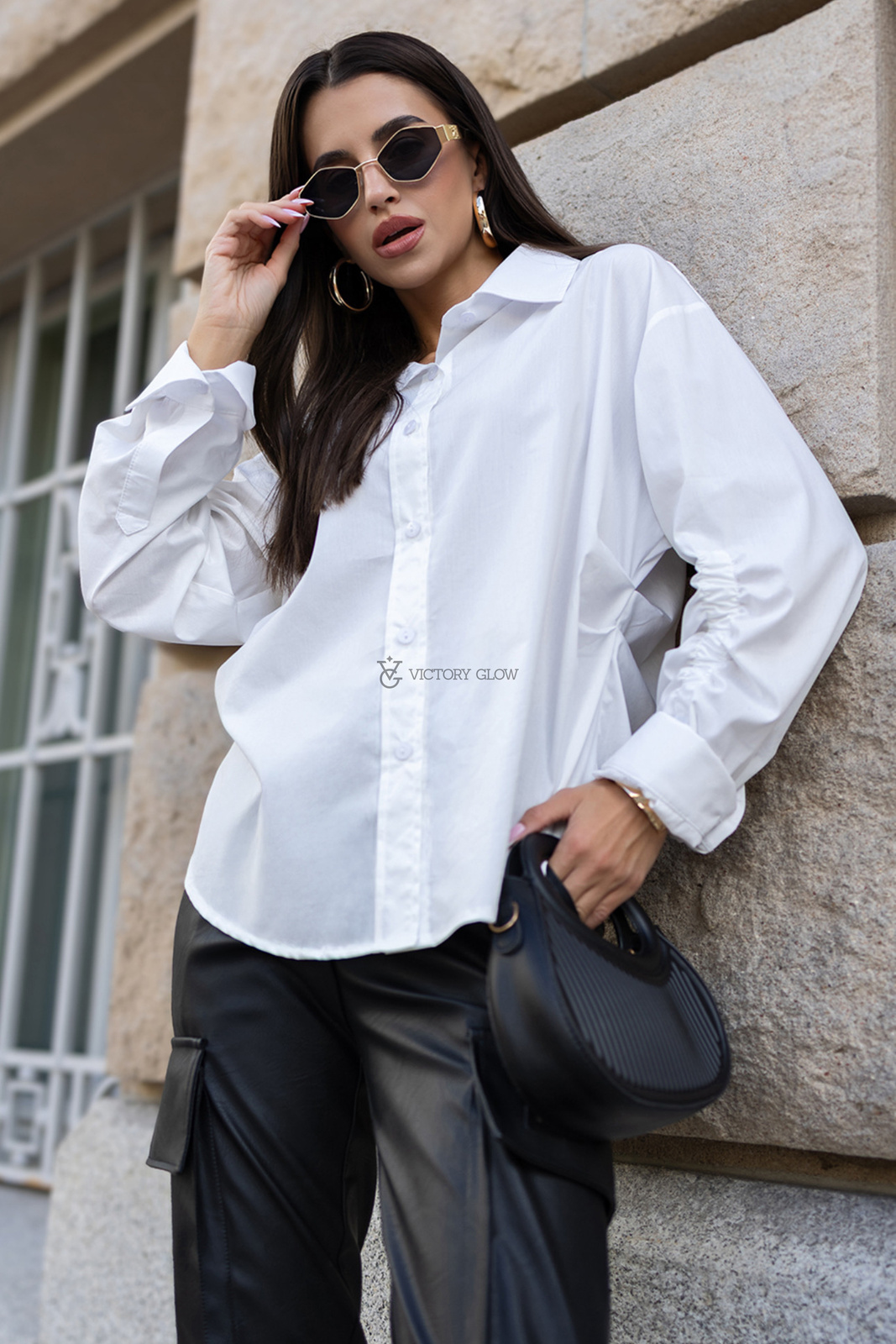 Podkreśl swój wyjątkowy styl dzięki tej eleganckiej damskiej koszuli z marszczeniami na rękawach!
