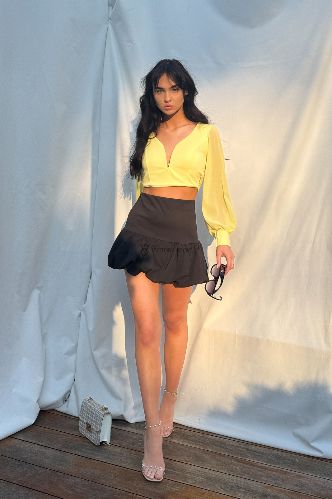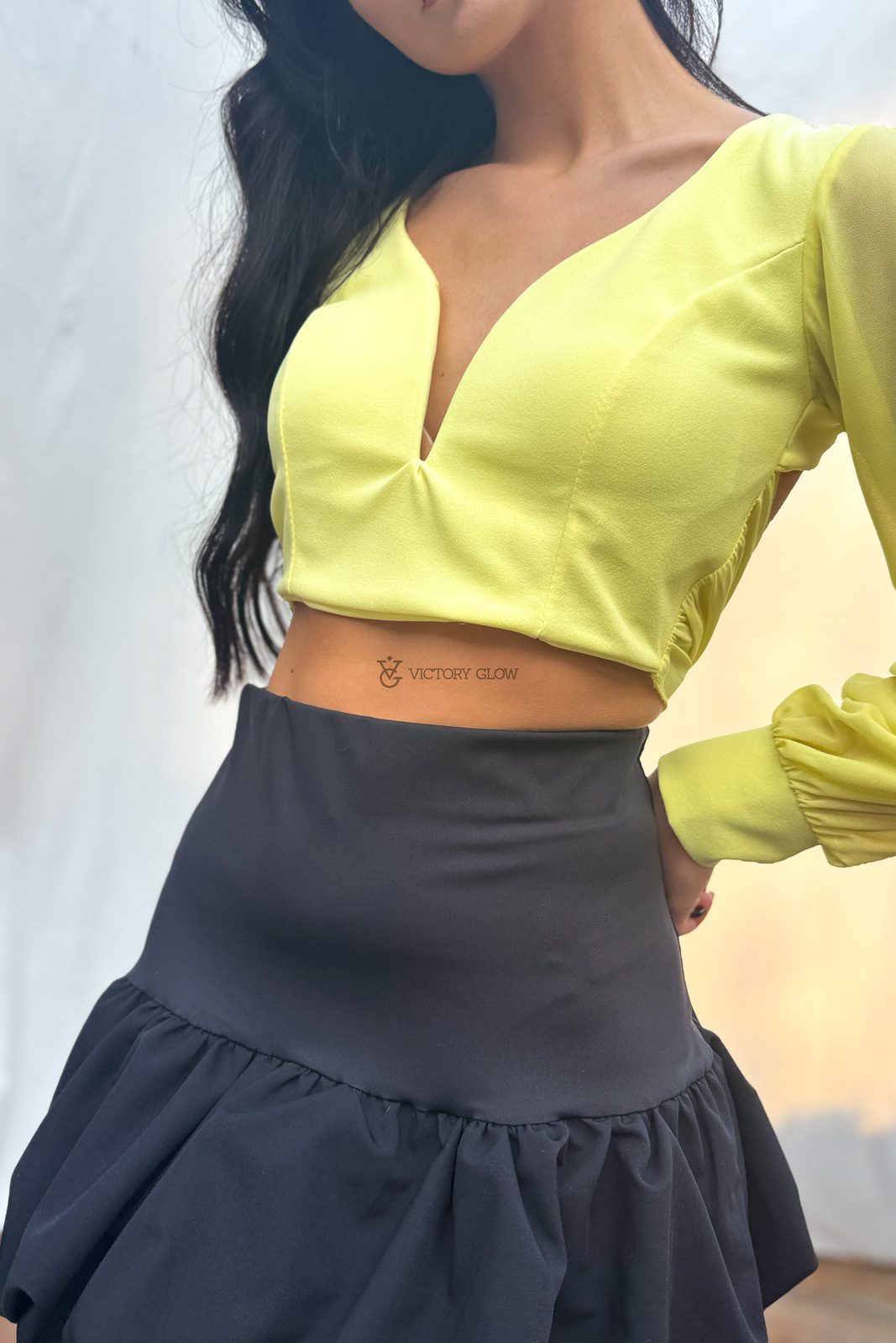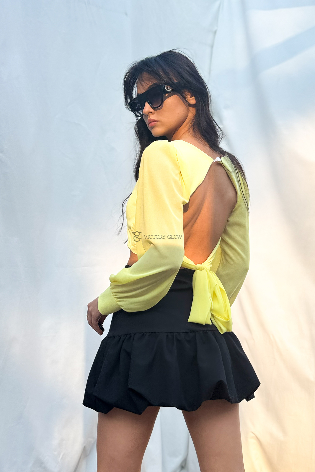 Krótka bluzka Zoe szyfonowy rękaw odkryte plecy żółta
