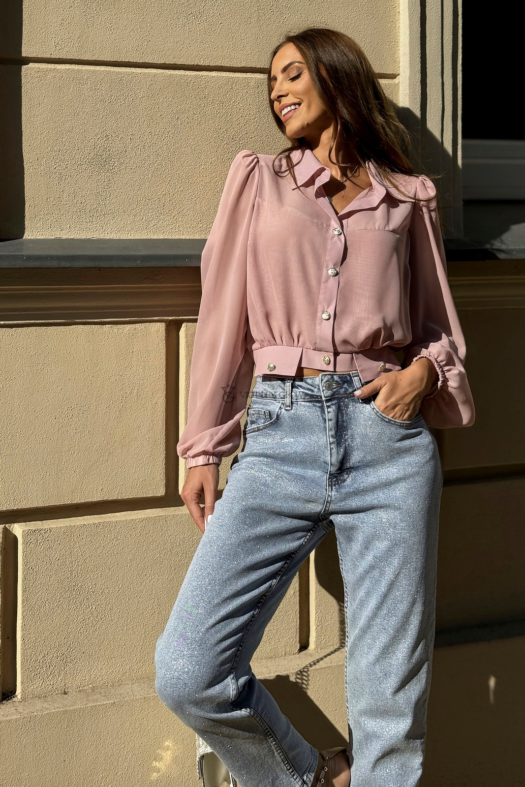 - Krótka szyfonowa koszula La Perla pudrowa z imitacją kieszonek