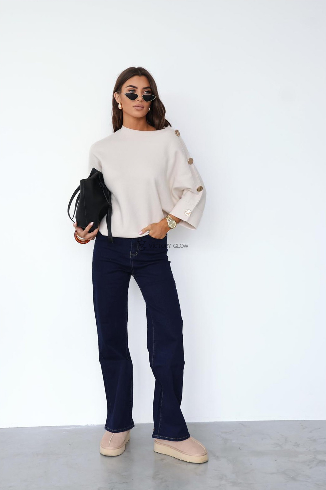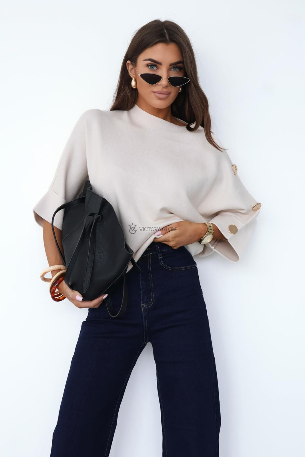 Krótki sweter z ozdobnymi guzikami na rękawach Evelyn beżowy