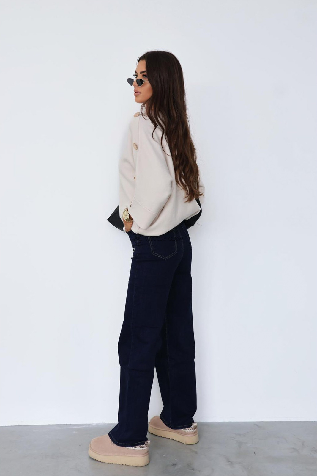- Krótki sweter oversize z dekoracyjnymi guzikami na rękawach