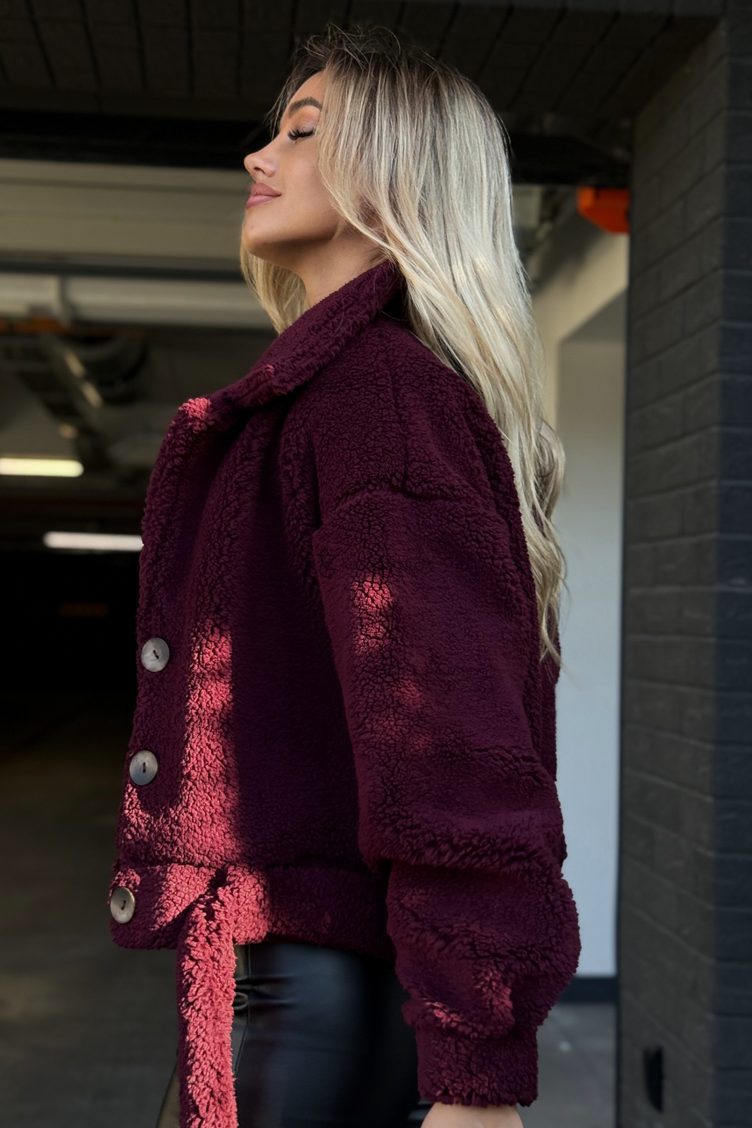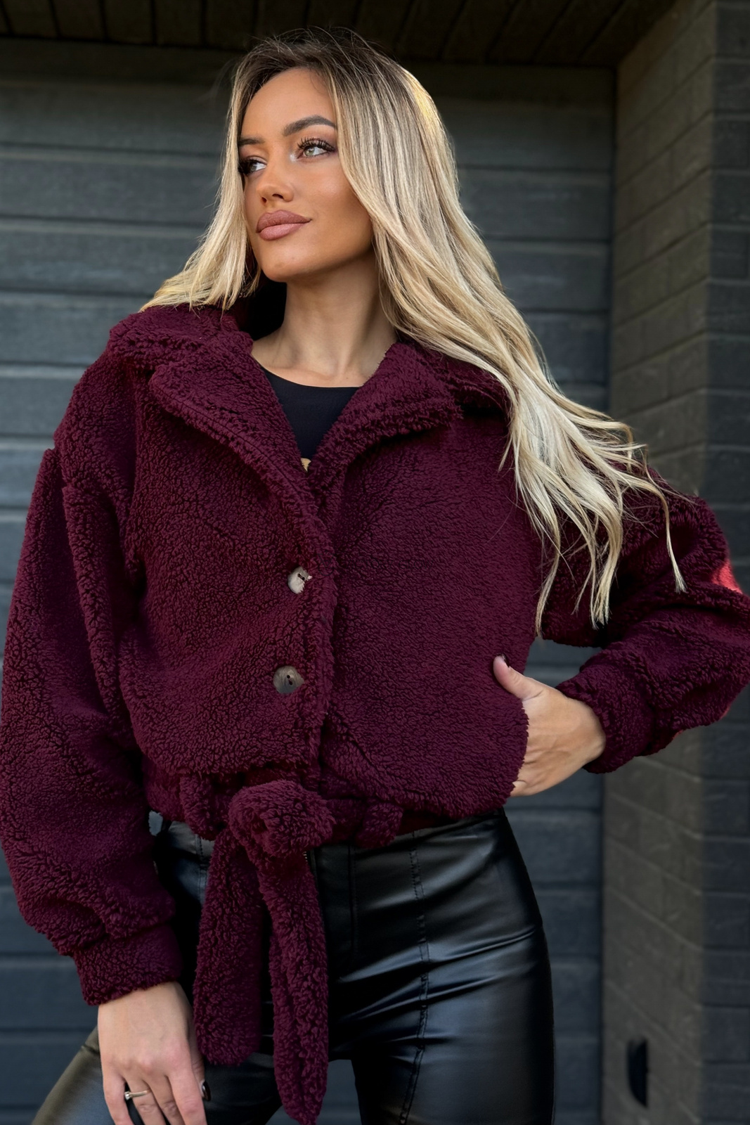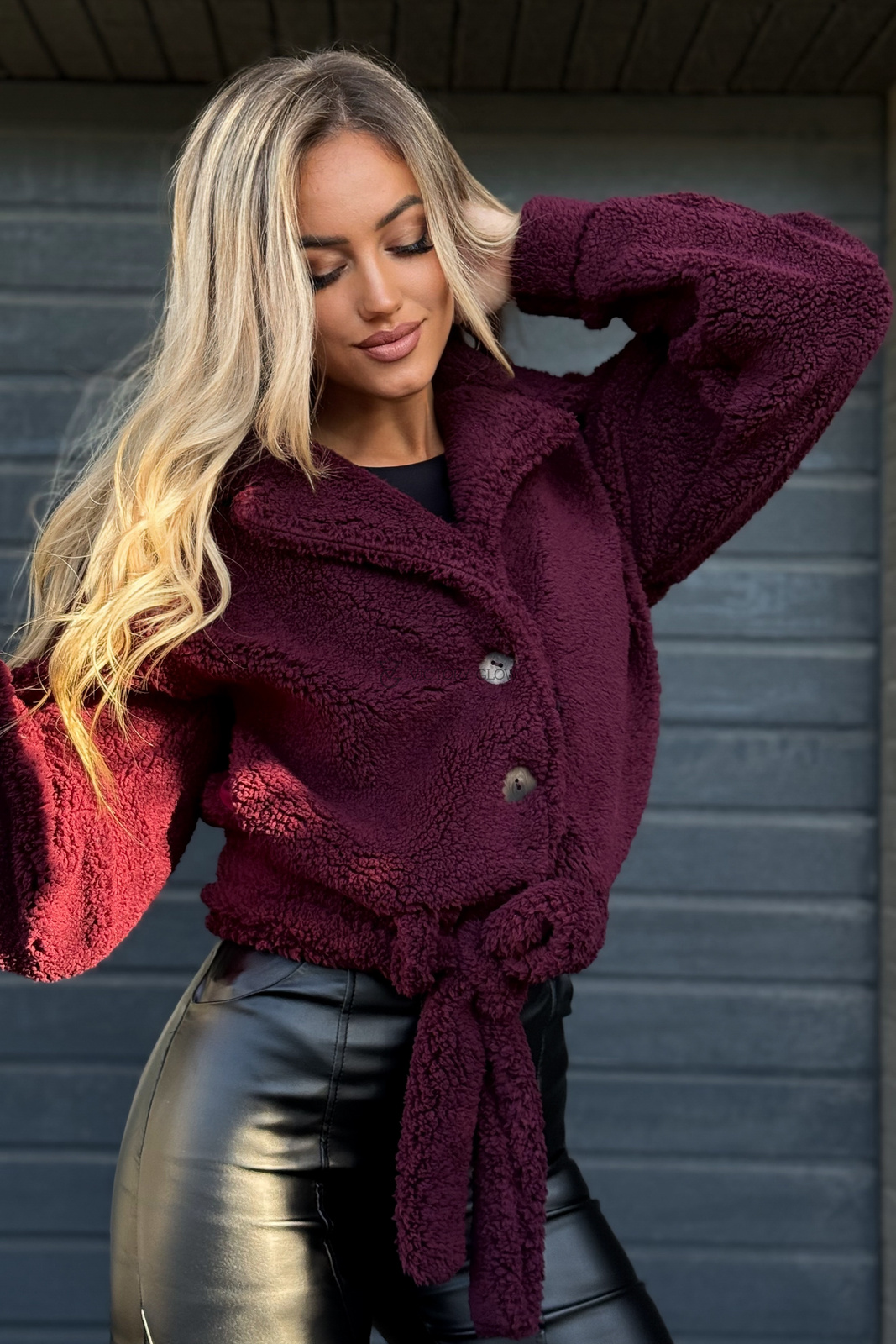 Krótkie futerko baranek Bear z kołnierzem bordowe