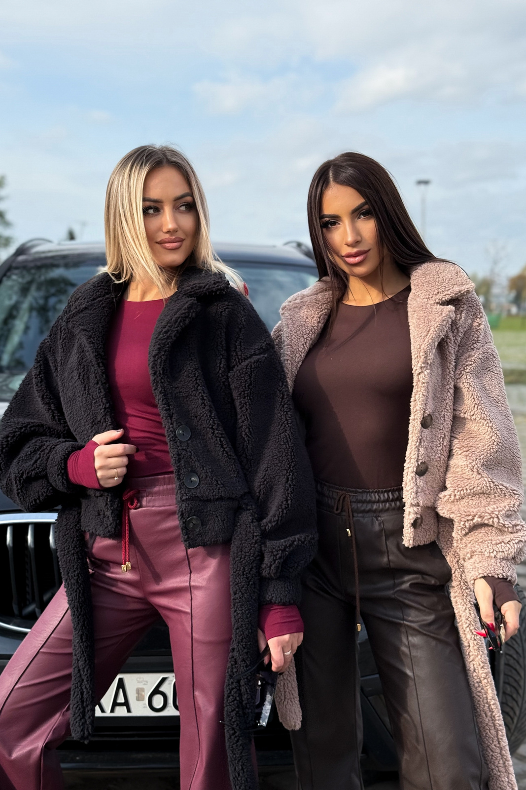 Krótkie futerko baranek Bear z kołnierzem czarne