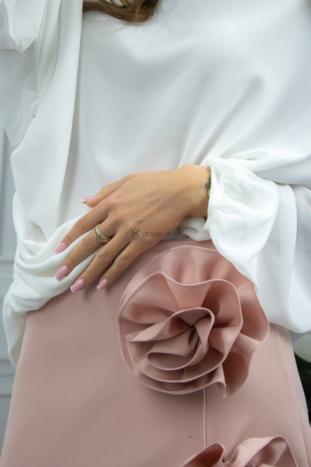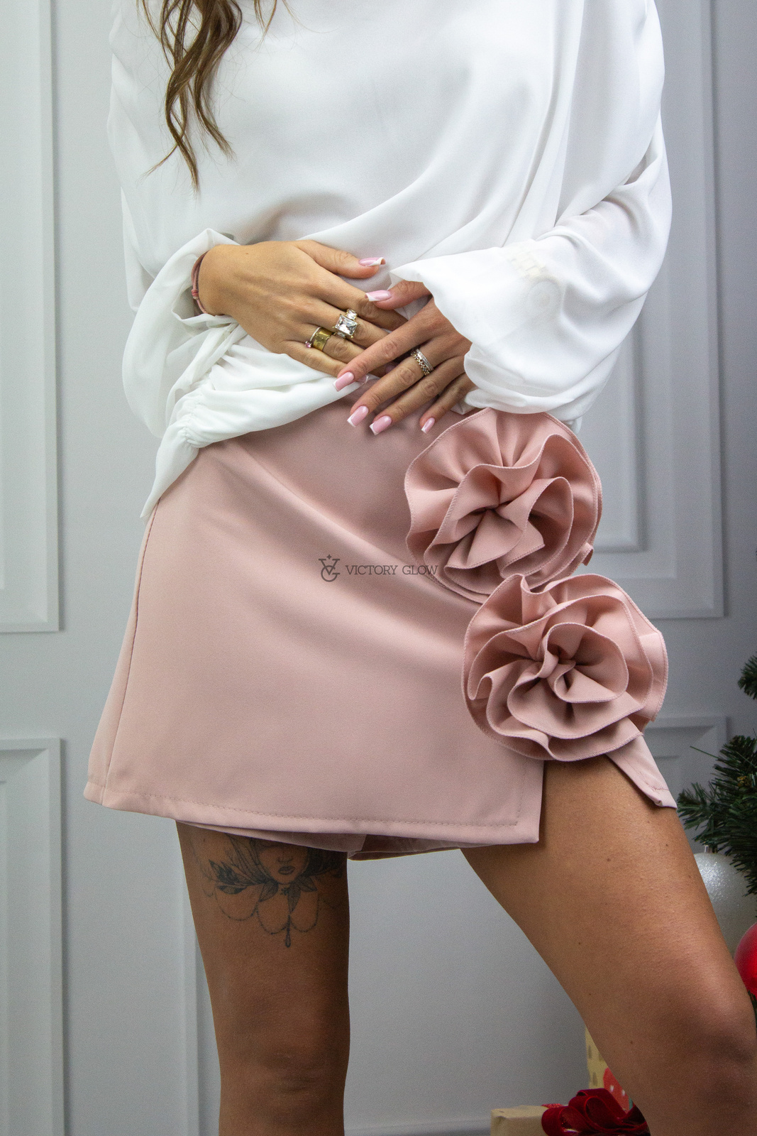 Krótkie spódnico - spodenki z kwiatami 3D Sweet pudrowy róż