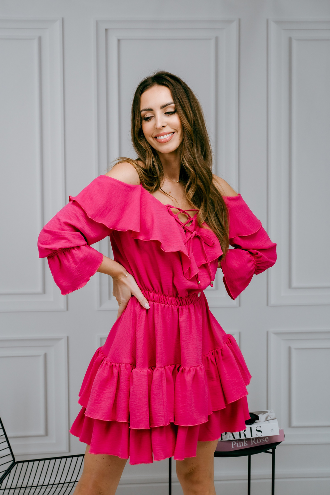 - Piękna sukienka hiszpanka z falbanami i wiązaniem w dekolcie