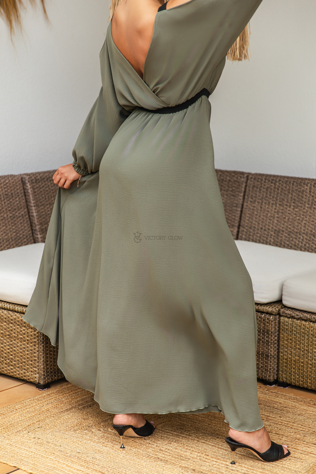 Maxi sukienka z kopertowym dekoltem Fame Icon oliwkowa