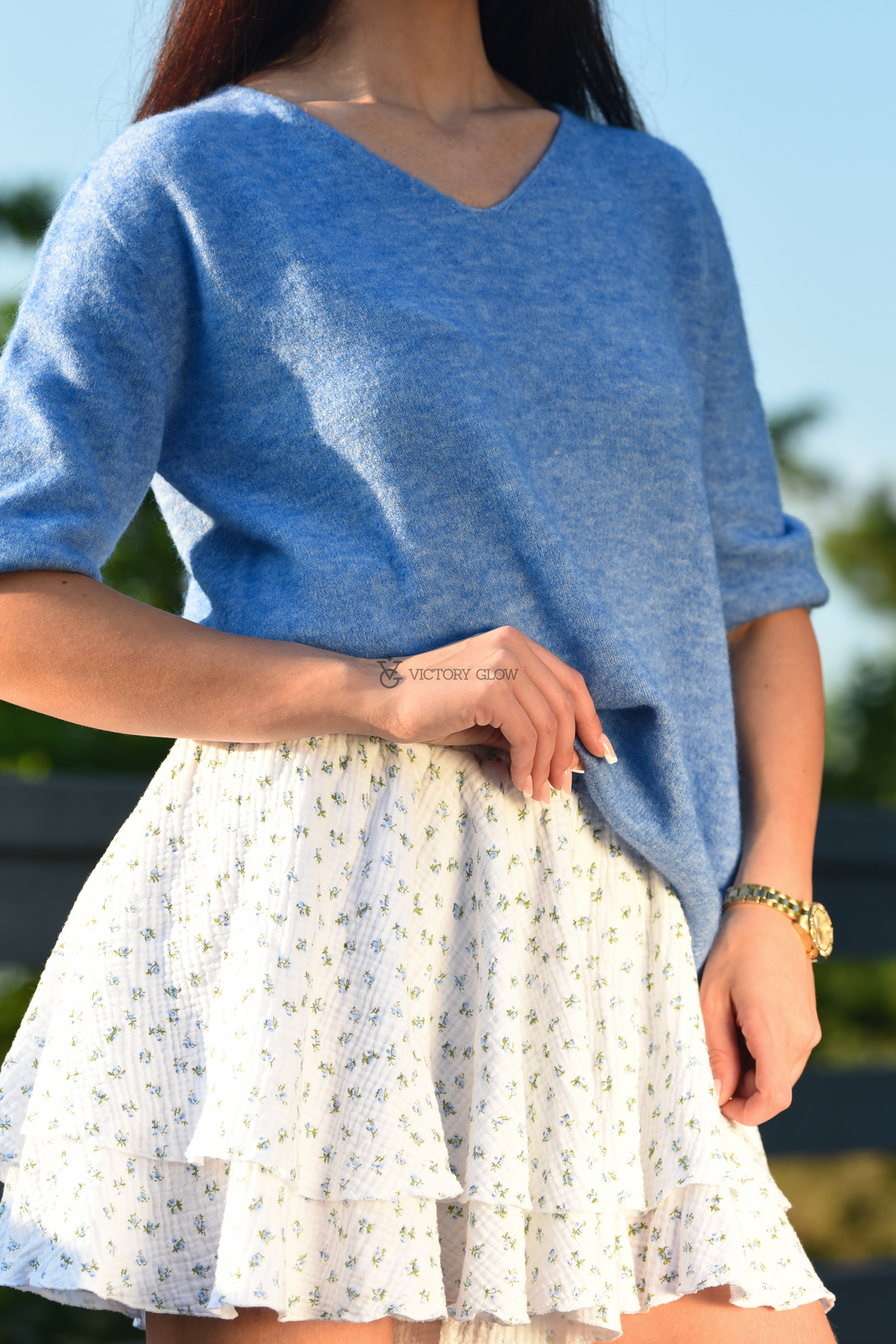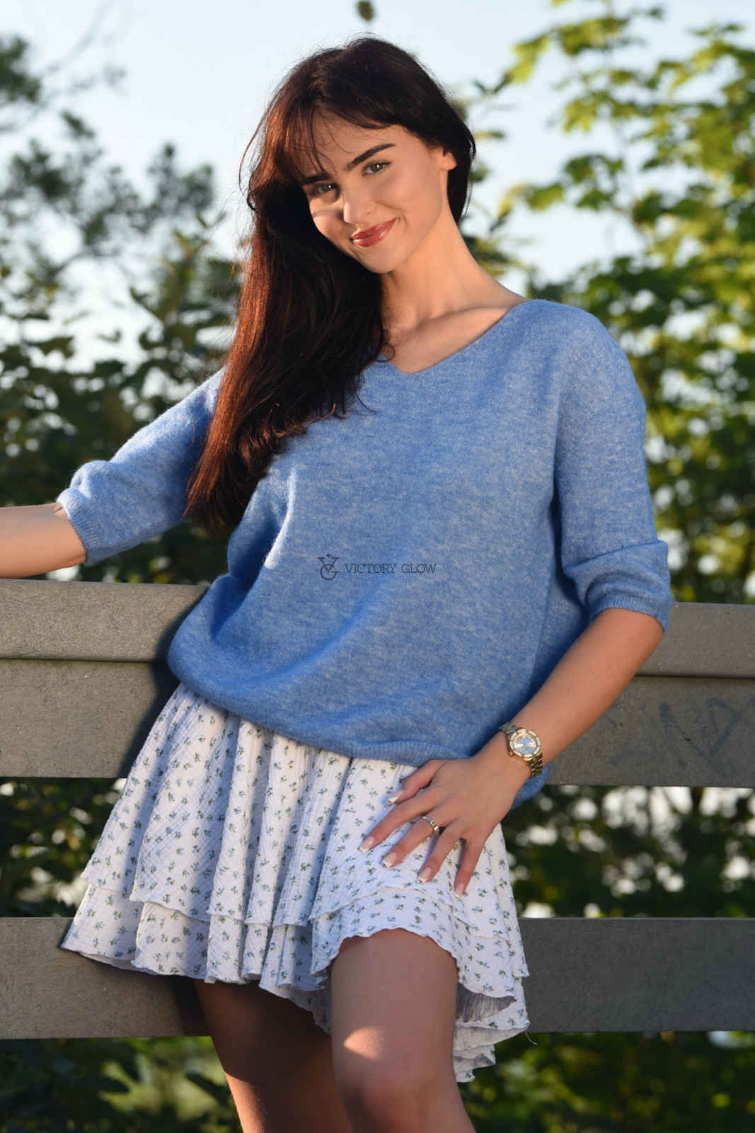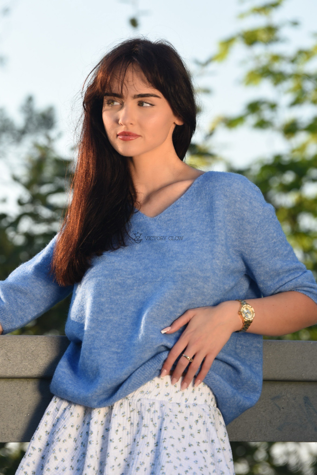 Miękki sweter Baby Alpaka z rękawem 3/4 niebieski melanż