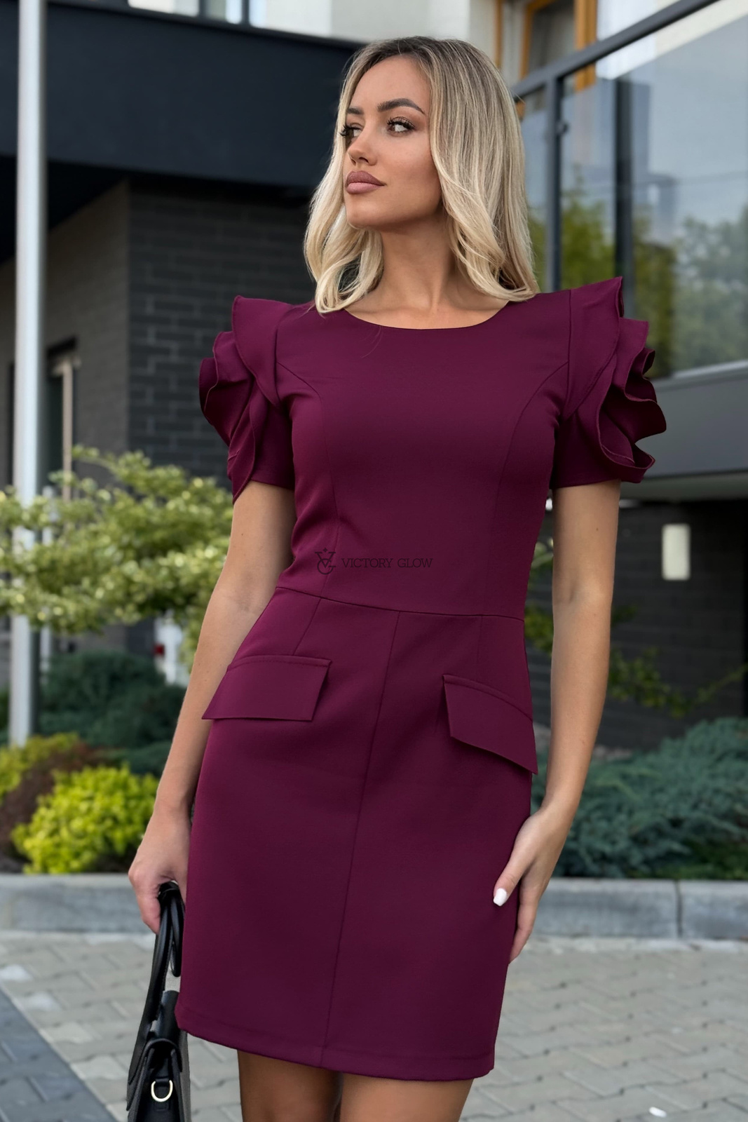 Ołówkowa sukienka z różą na rękawach Carly bordowa