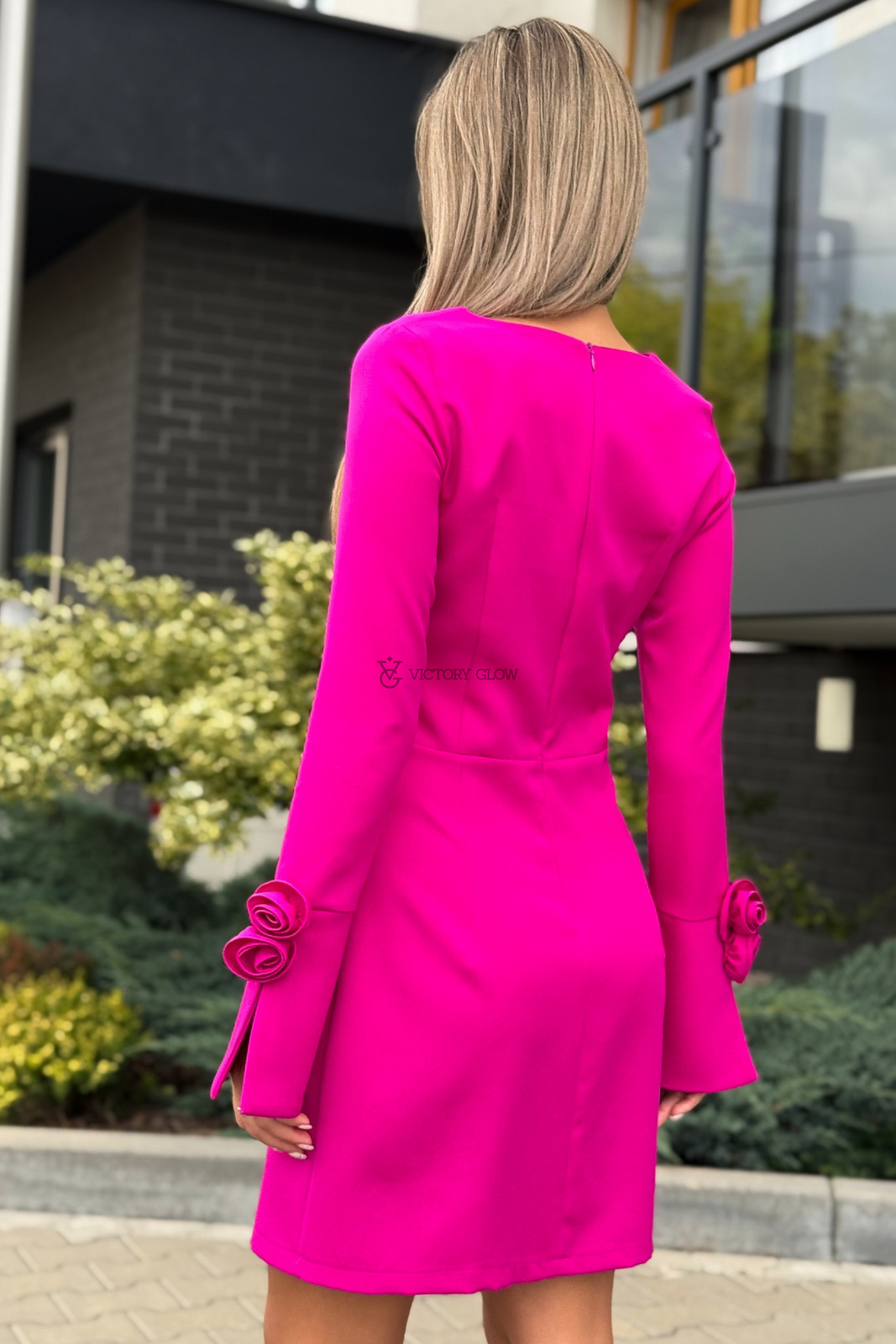 Ołówkowa sukienka z różą na rękawach Marly fuksja