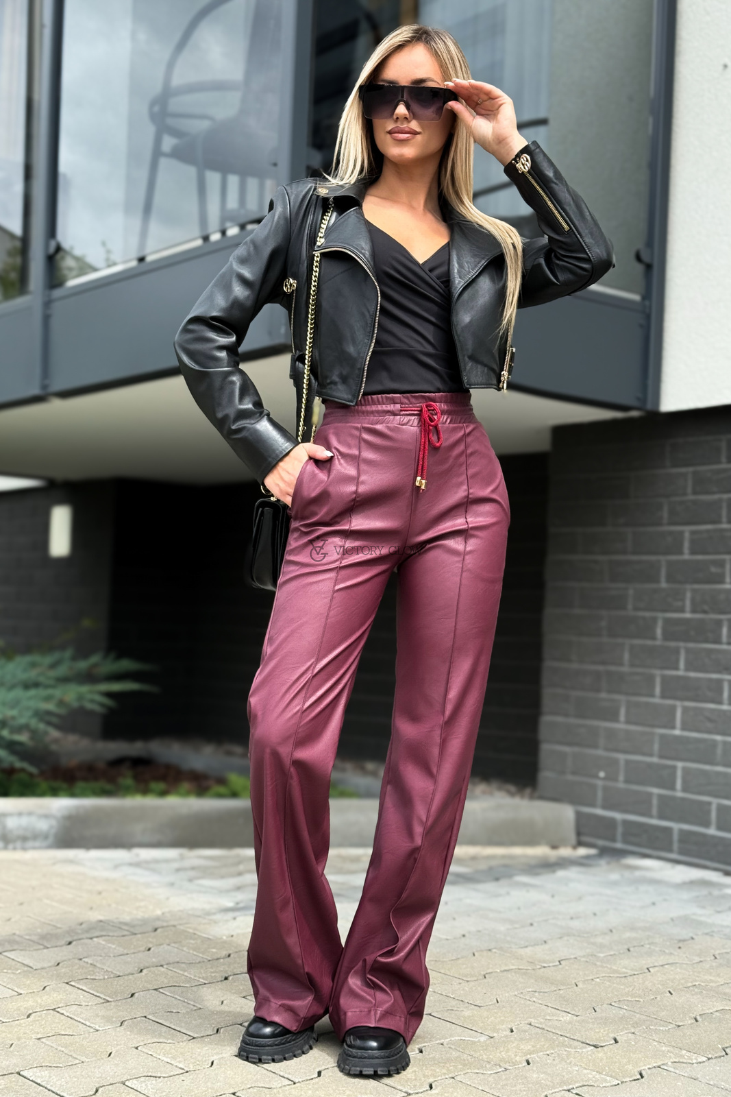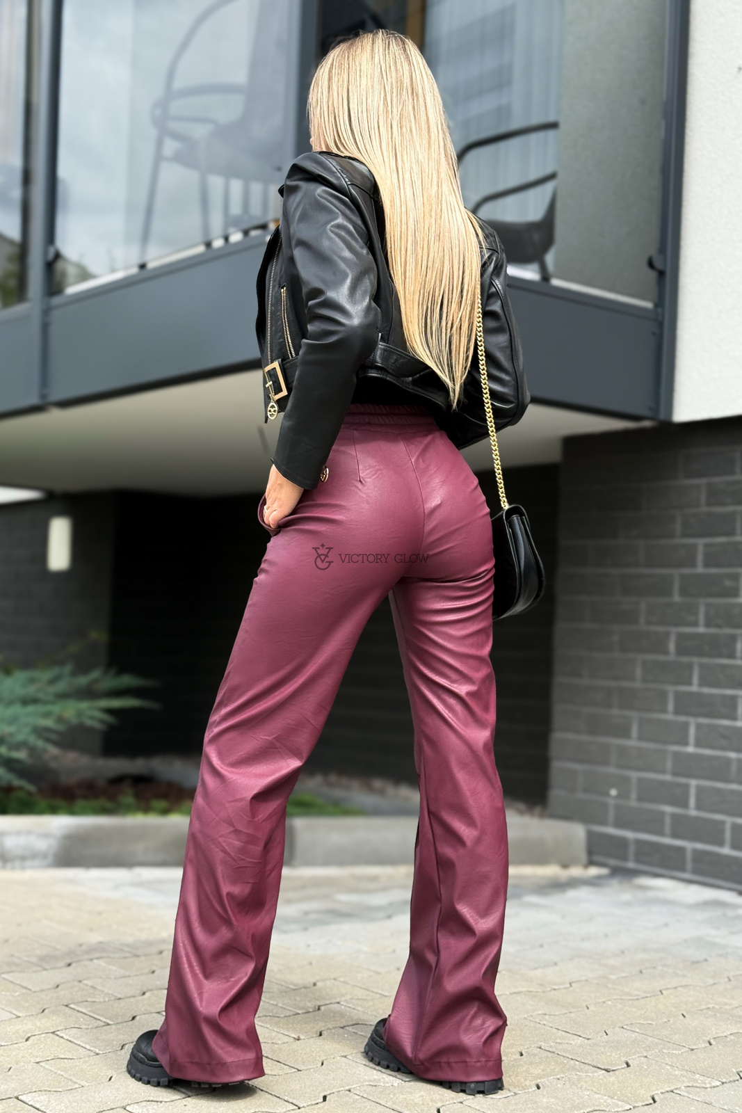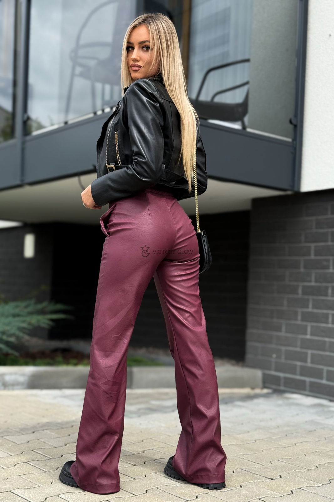 Spodnie z wysokim stanem eko skóra Surya bordowe