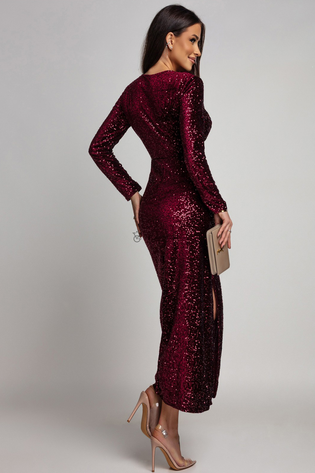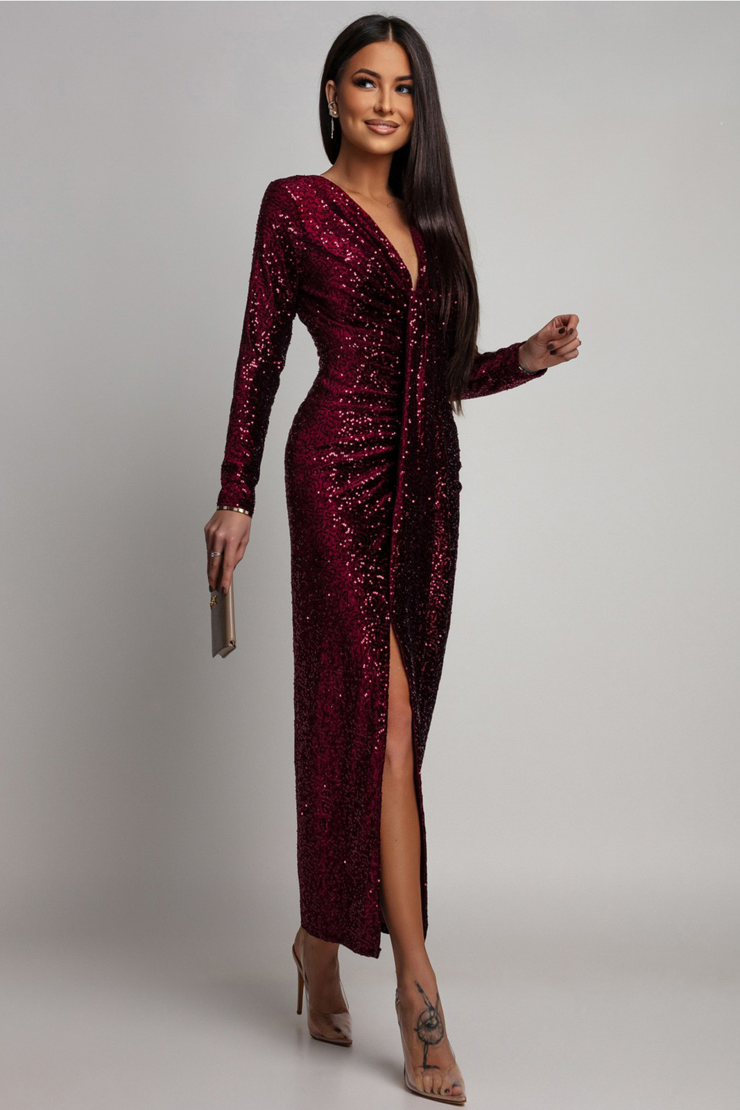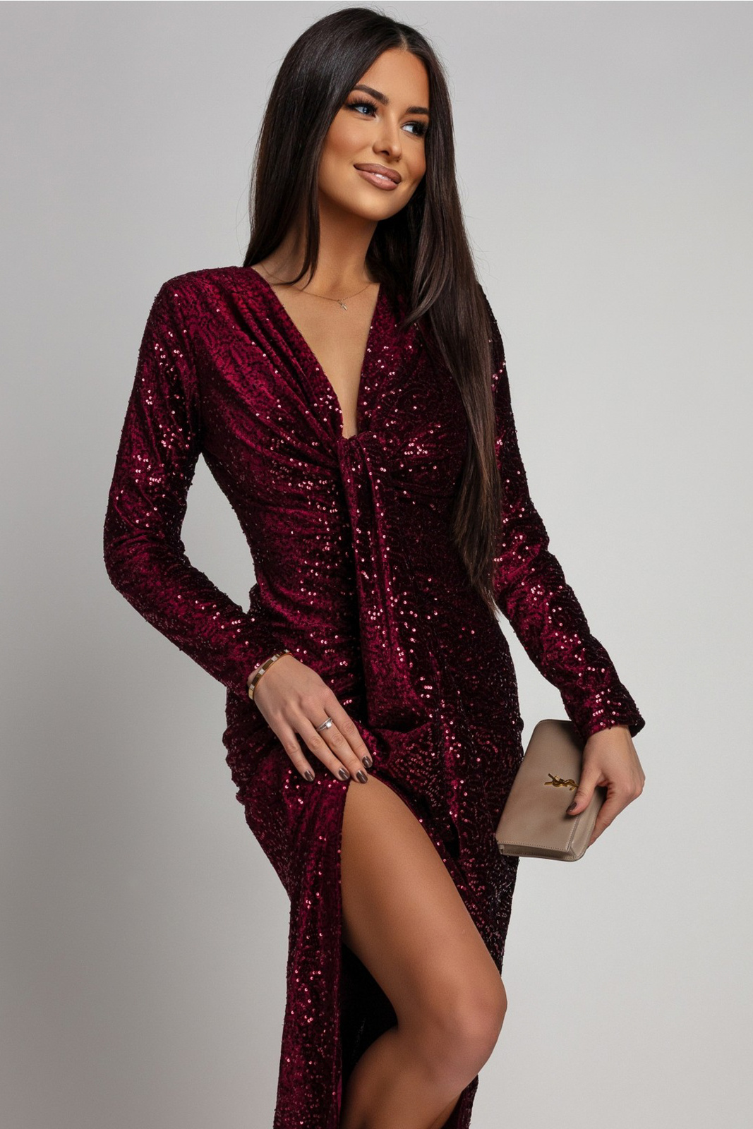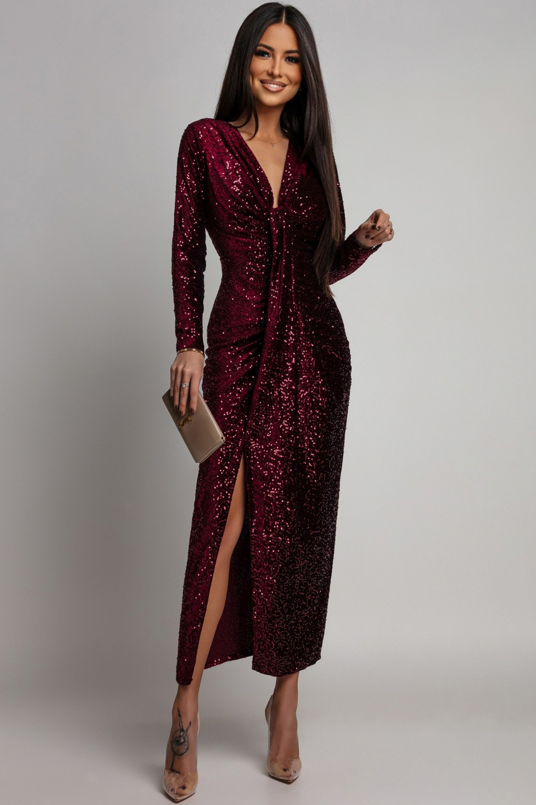 Sukienka cekinowa z drapowaniem Linett bordowa