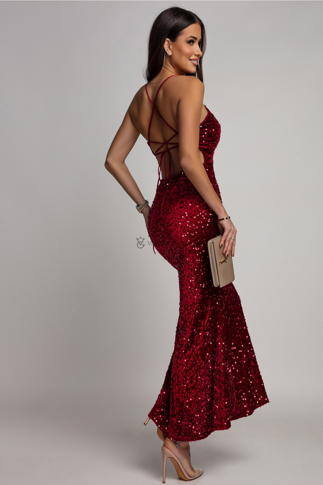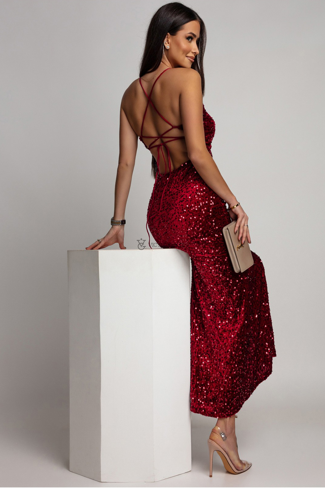 Sukienka cekinowa z odkrytymi plecami Nina bordowa
