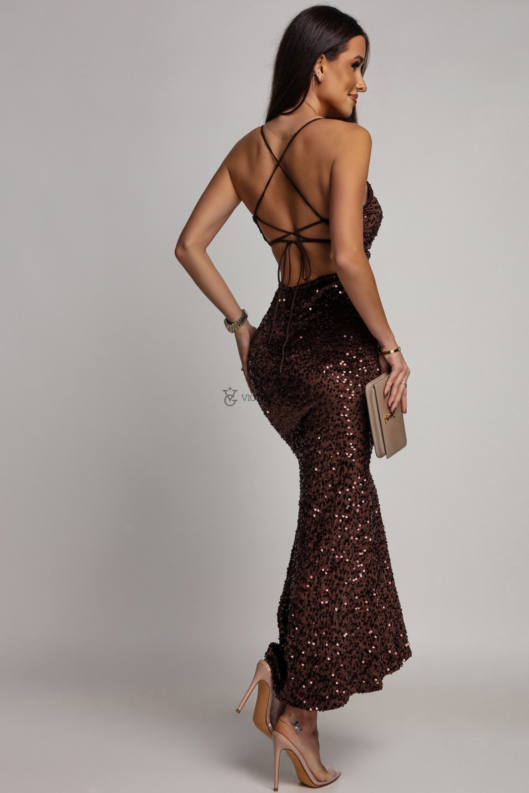 Sukienka cekinowa z odkrytymi plecami Nina czekoladowa