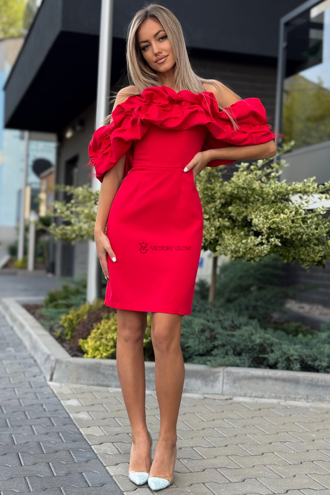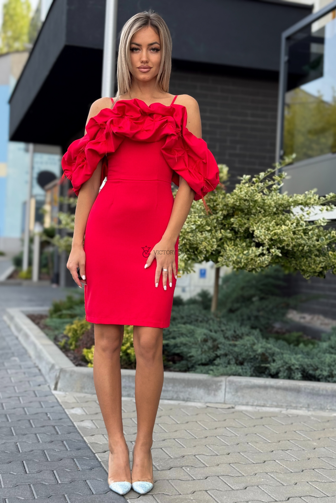 Sukienka koktajlowa Bella midi hiszpanka czerwona