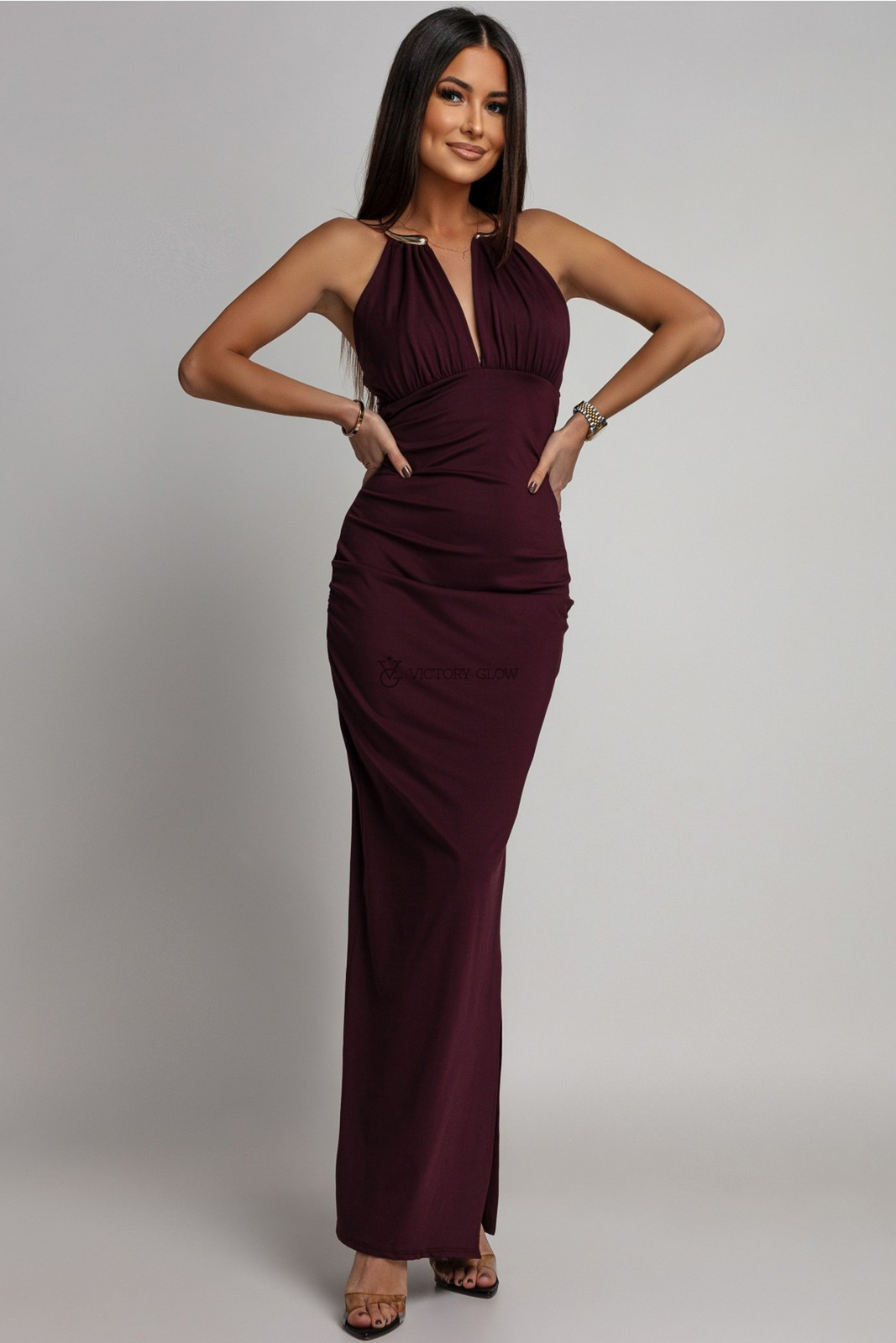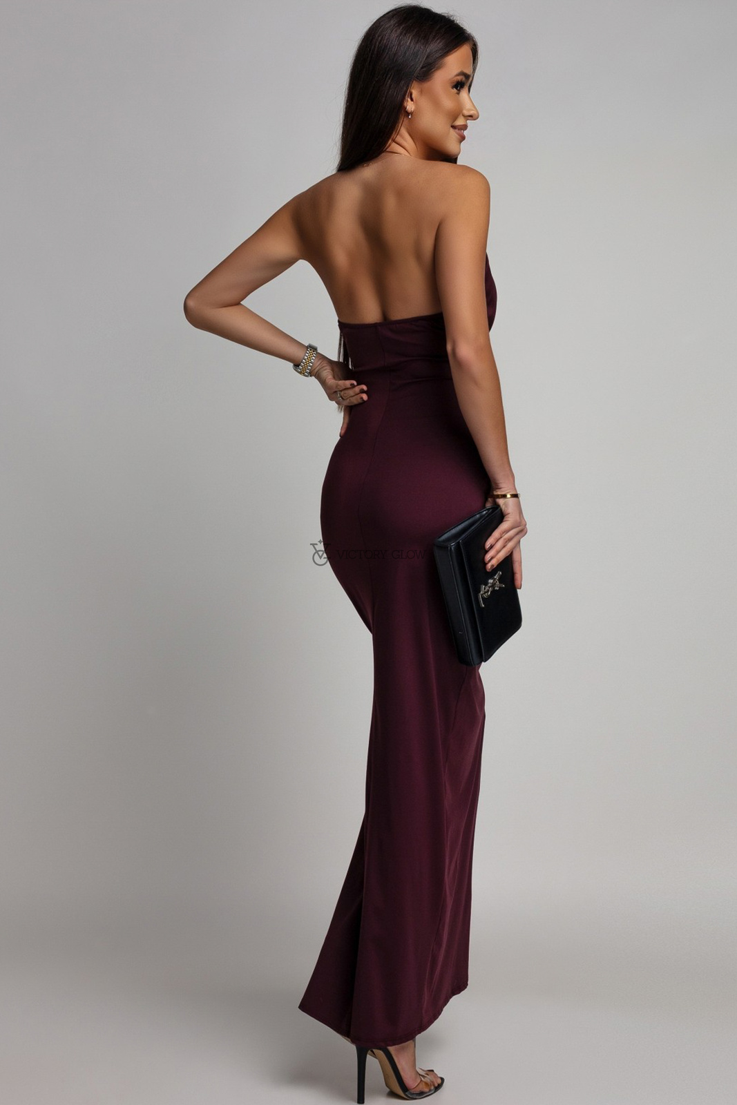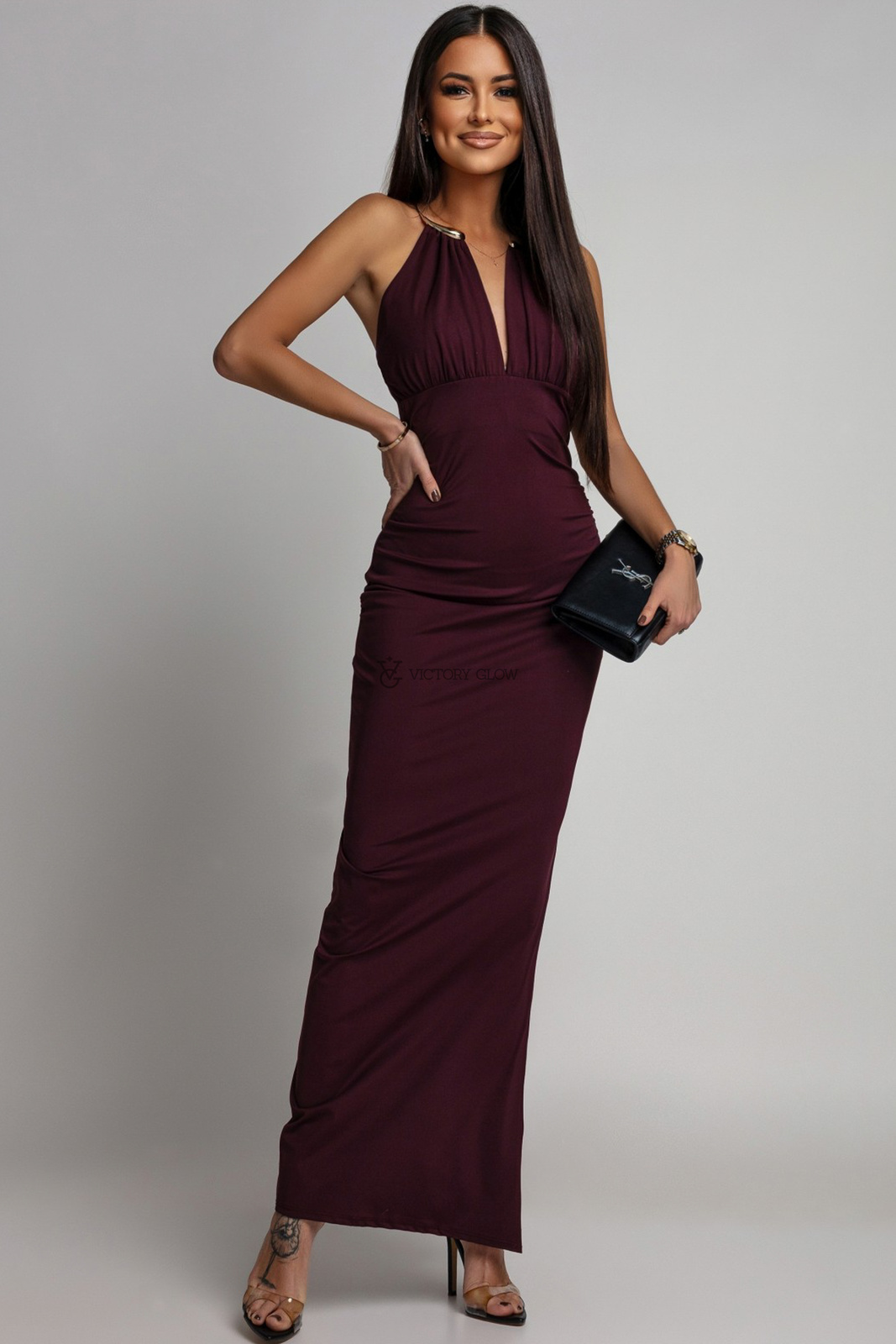 Sukienka maxi z biżuteryjnym dekoltem Gabby bordowa