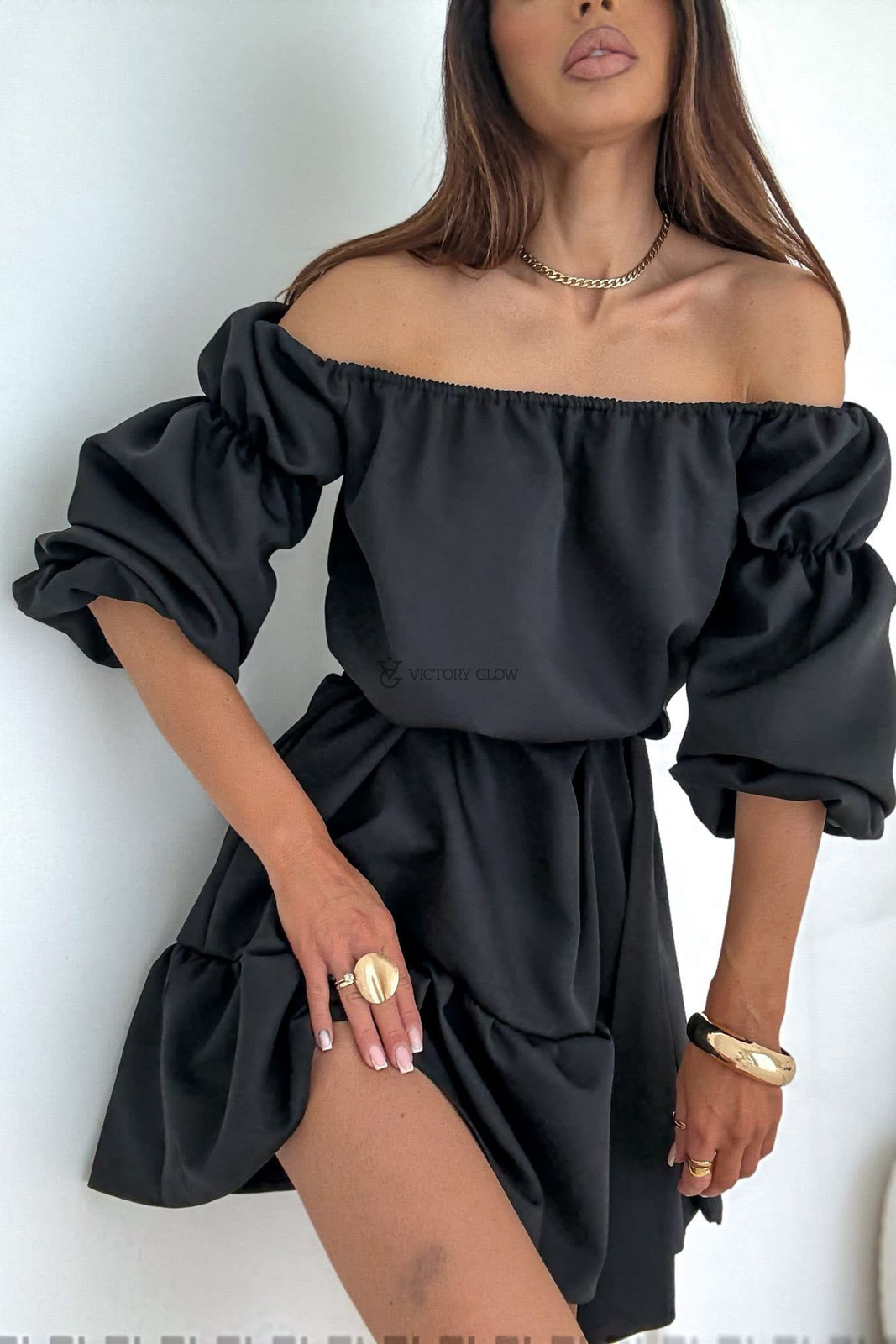 Odsłonięte ramiona pięknie eksponują dekolt i szyję, tworząc zmysłowy, a jednocześnie delikatny look.