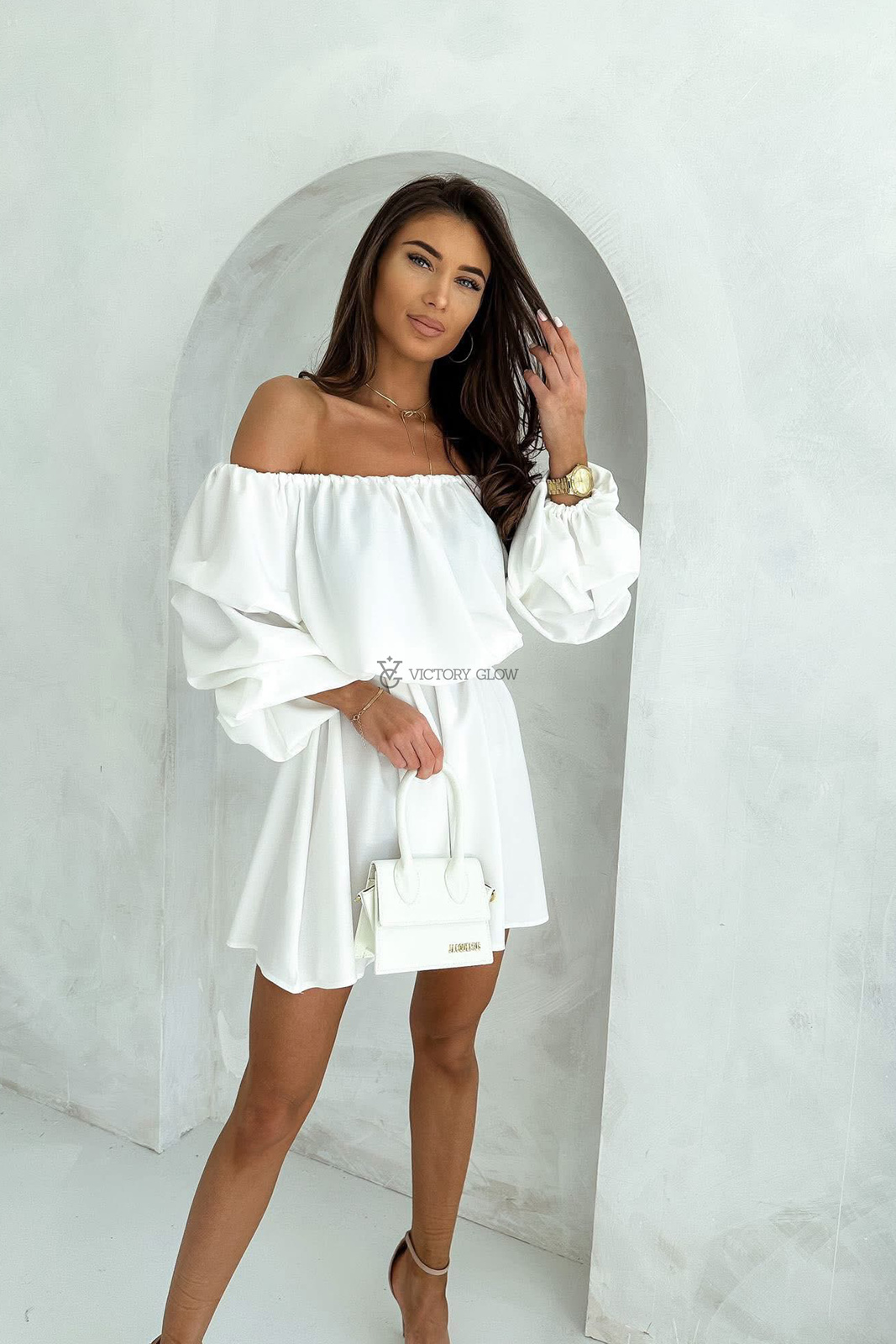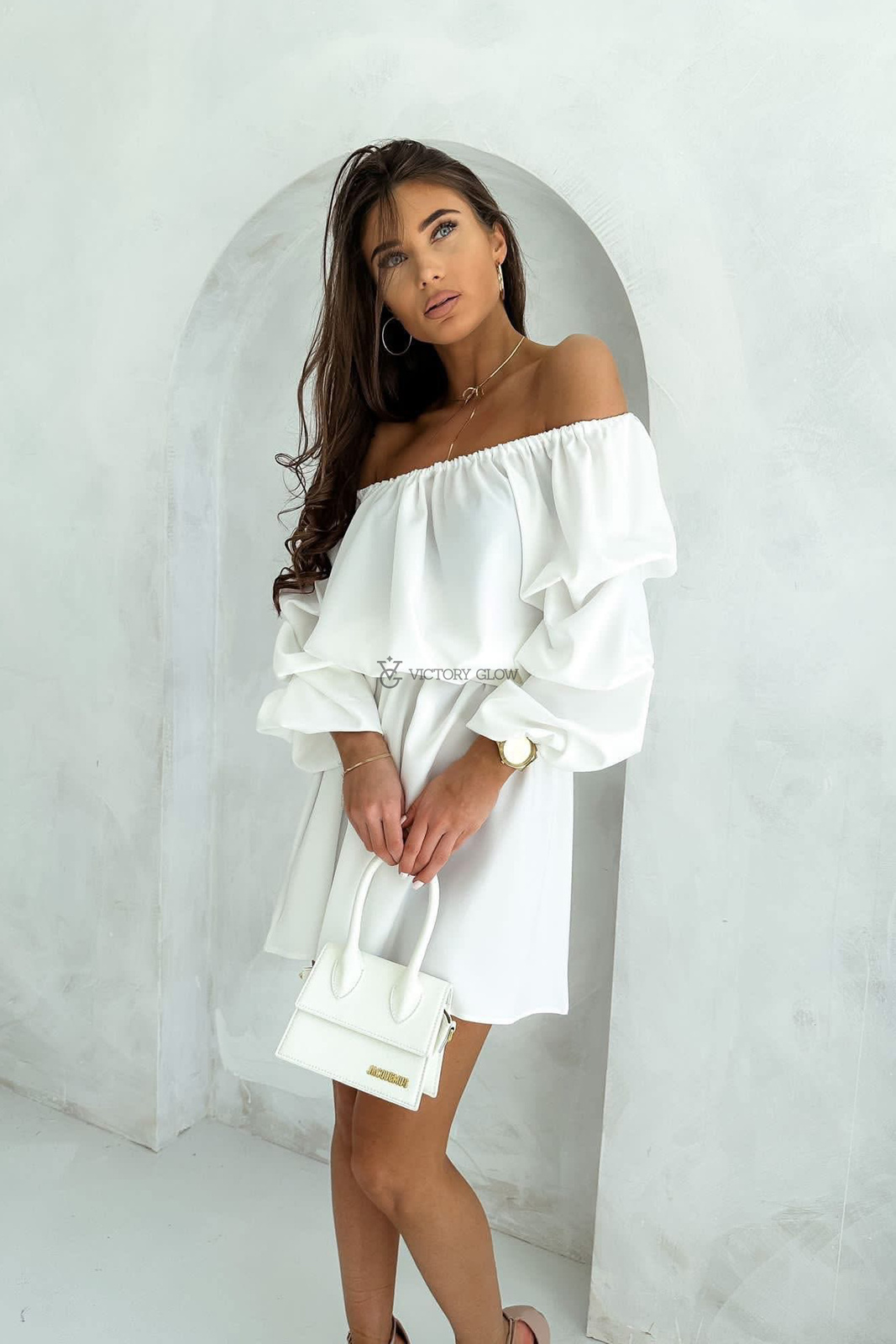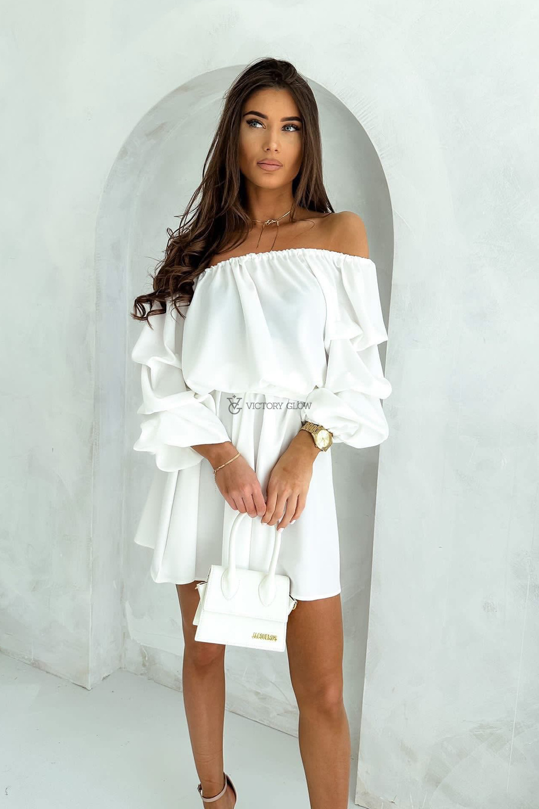 Sukienka Milli hiszpanka z marszczonymi rękawami biała