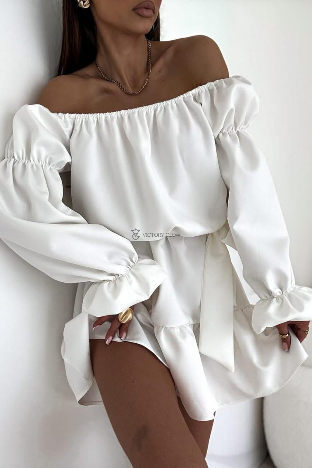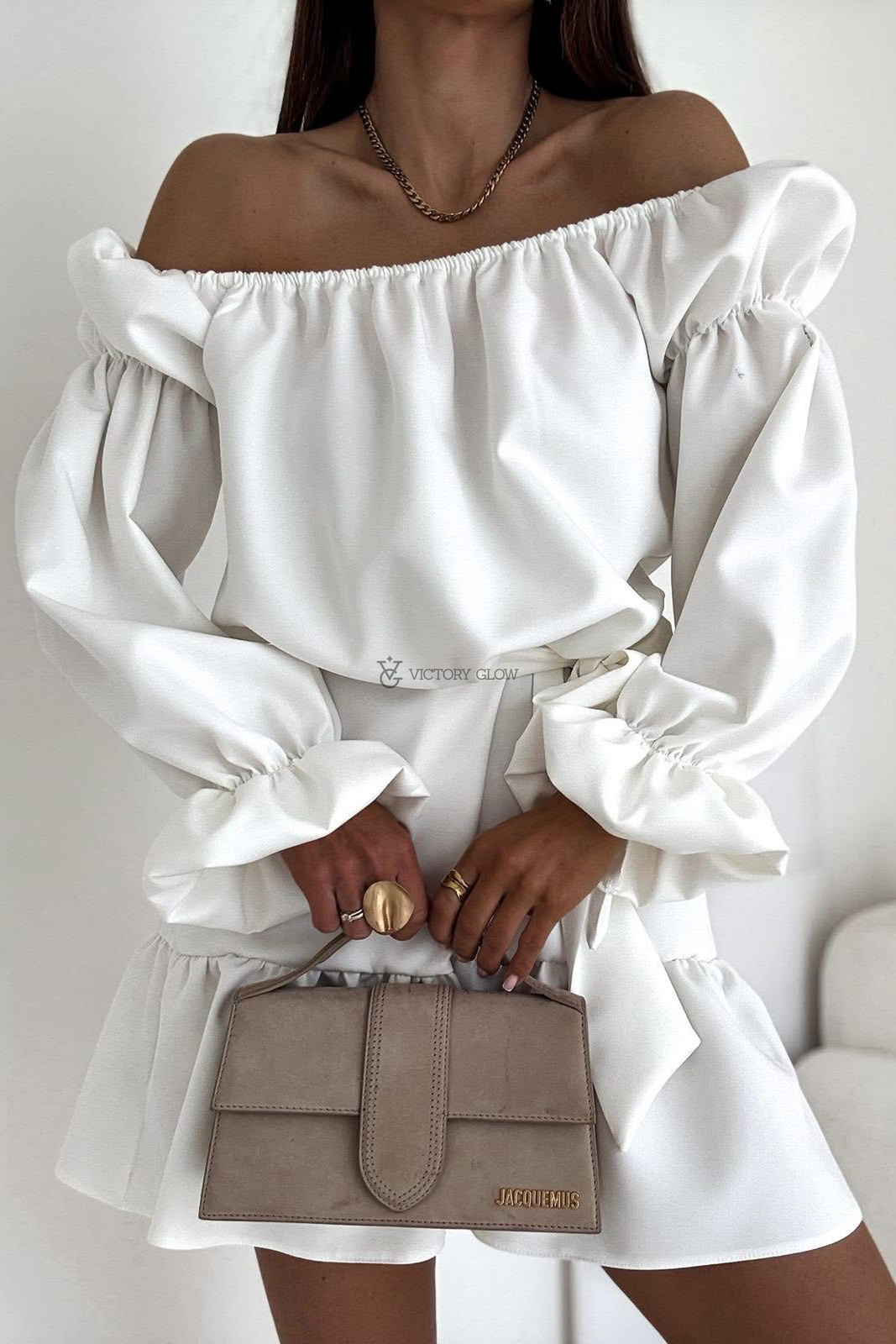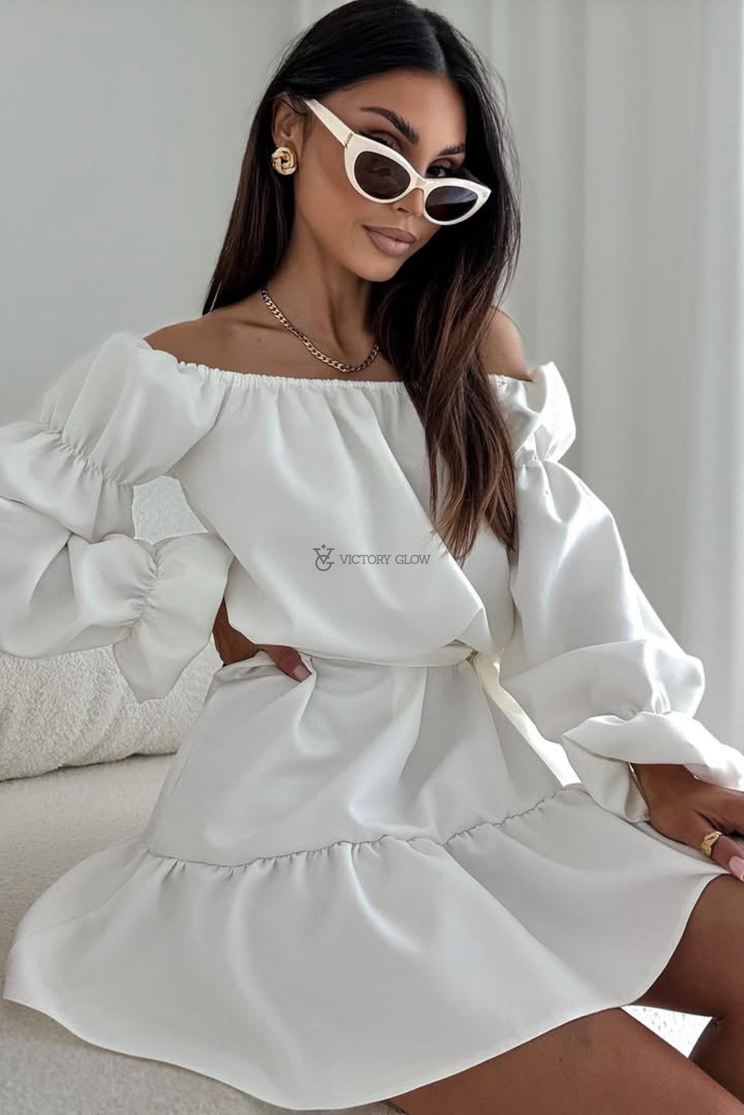 Sukienka Milli hiszpanka z marszczonymi rękawami biała