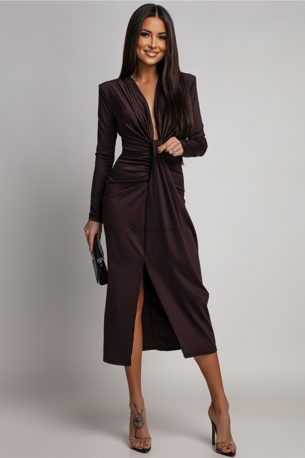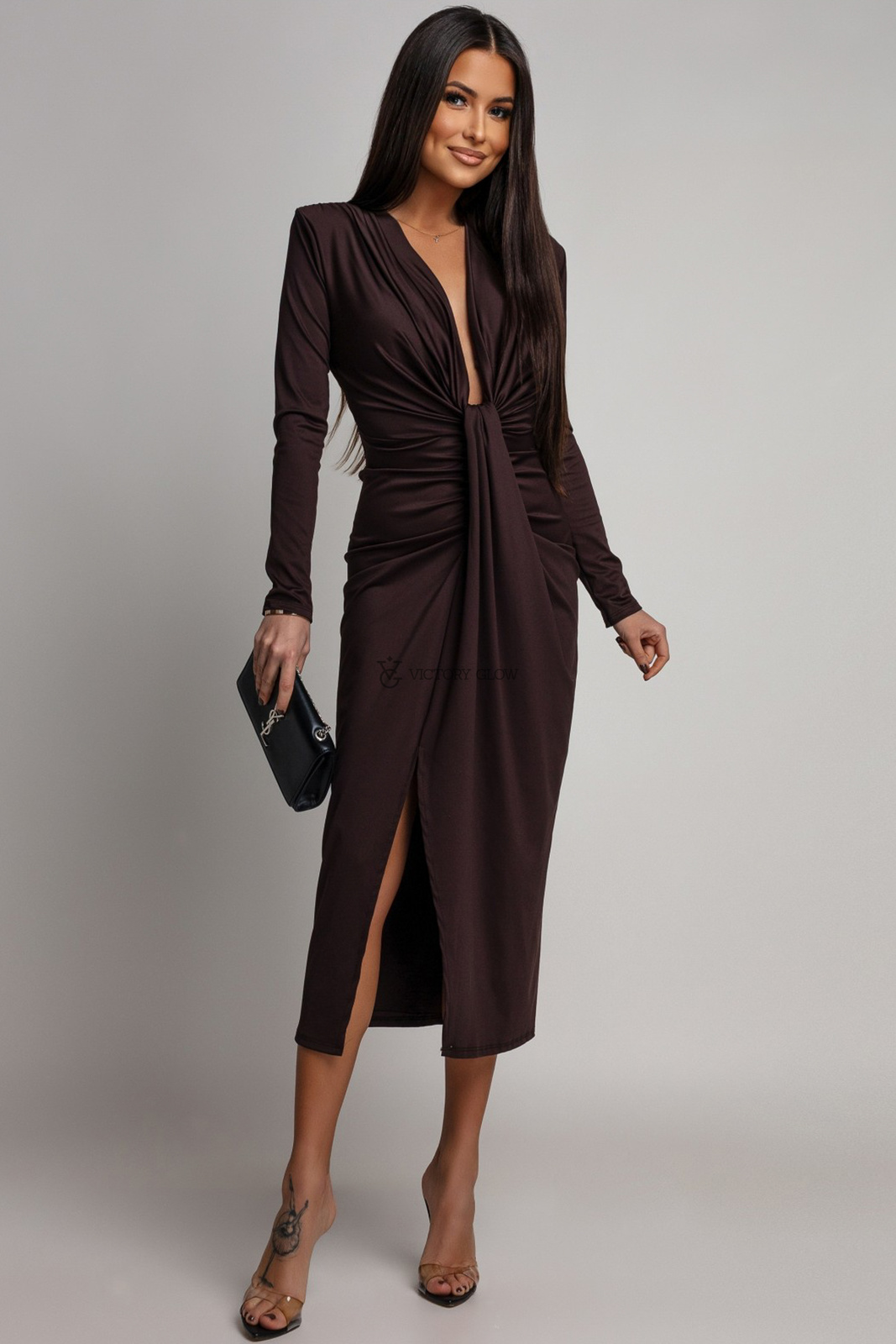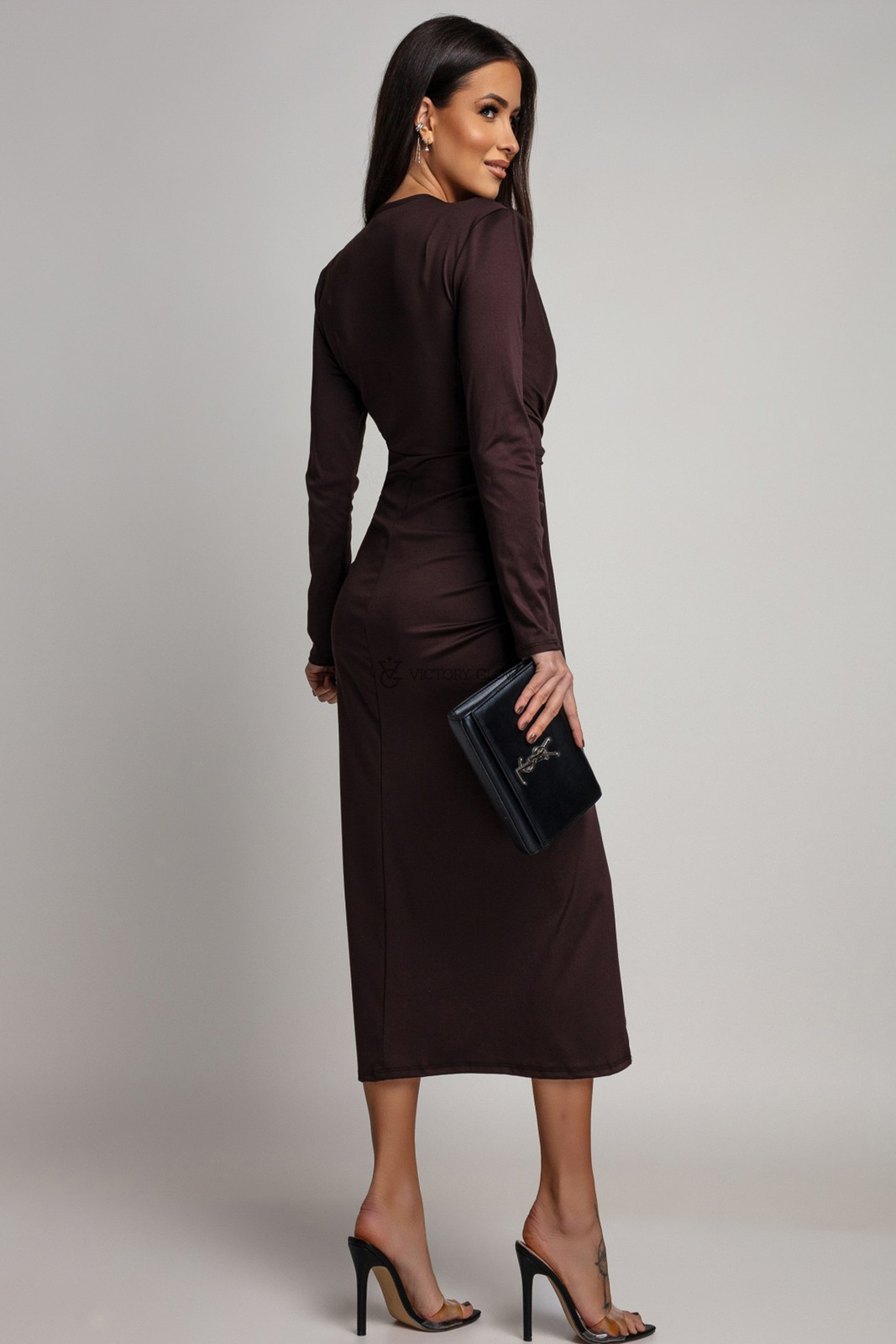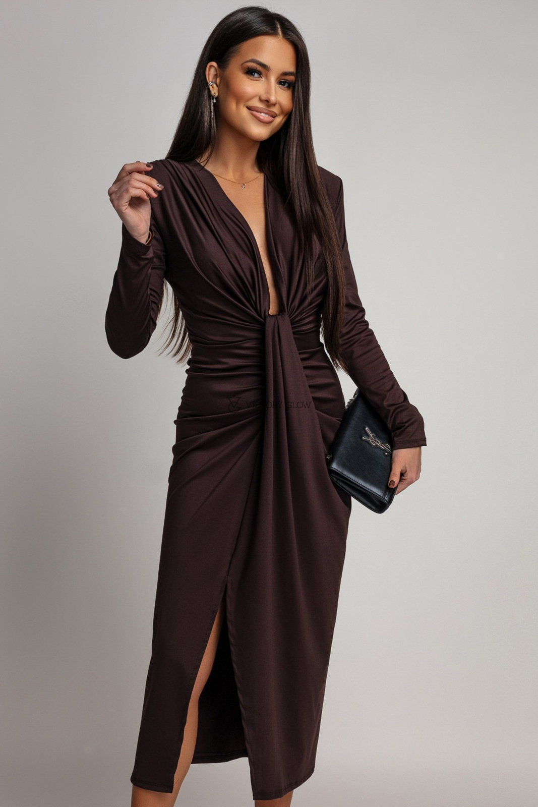 Sukienka w prążek z drapowaniem Bree czekoladowa