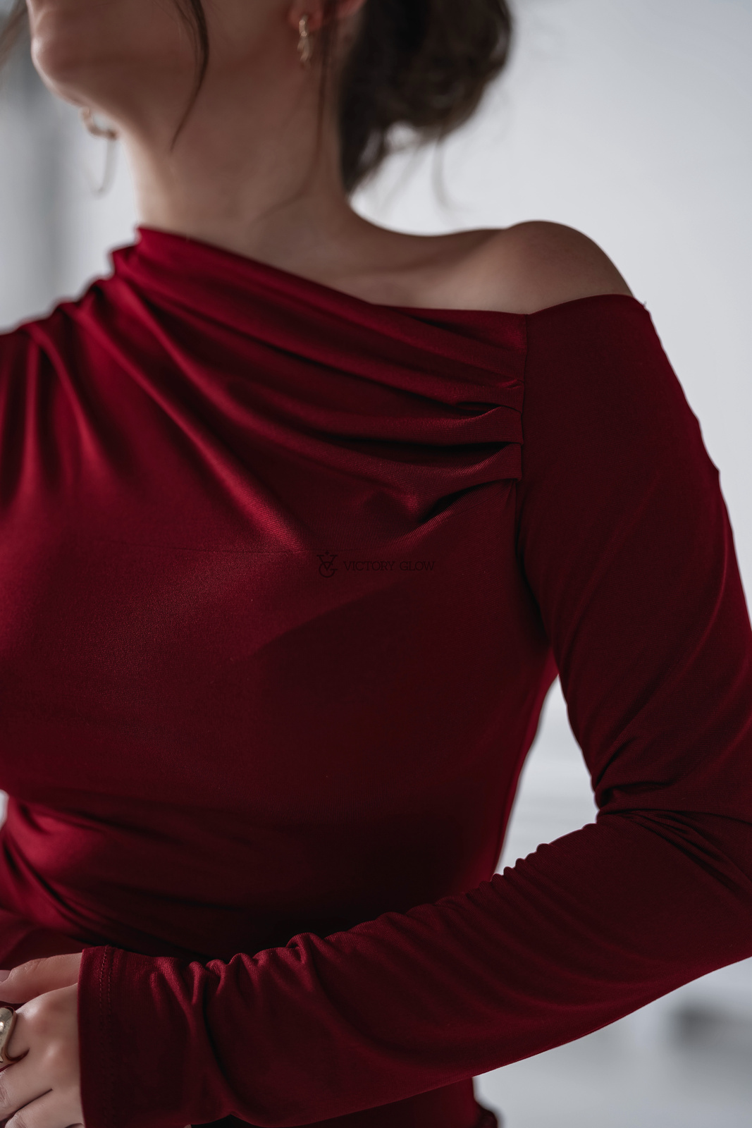 Finezyjne drapowania pięknie podkreślają linię ramion, dodając całości lekkości i wysmakowanego charakteru.