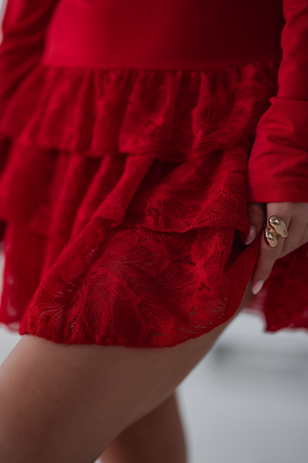 Sukienka z koronkowymi falbanami Fabia czerwona