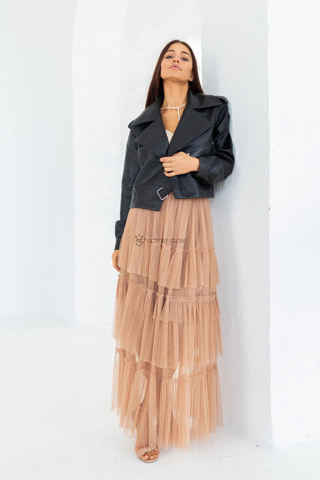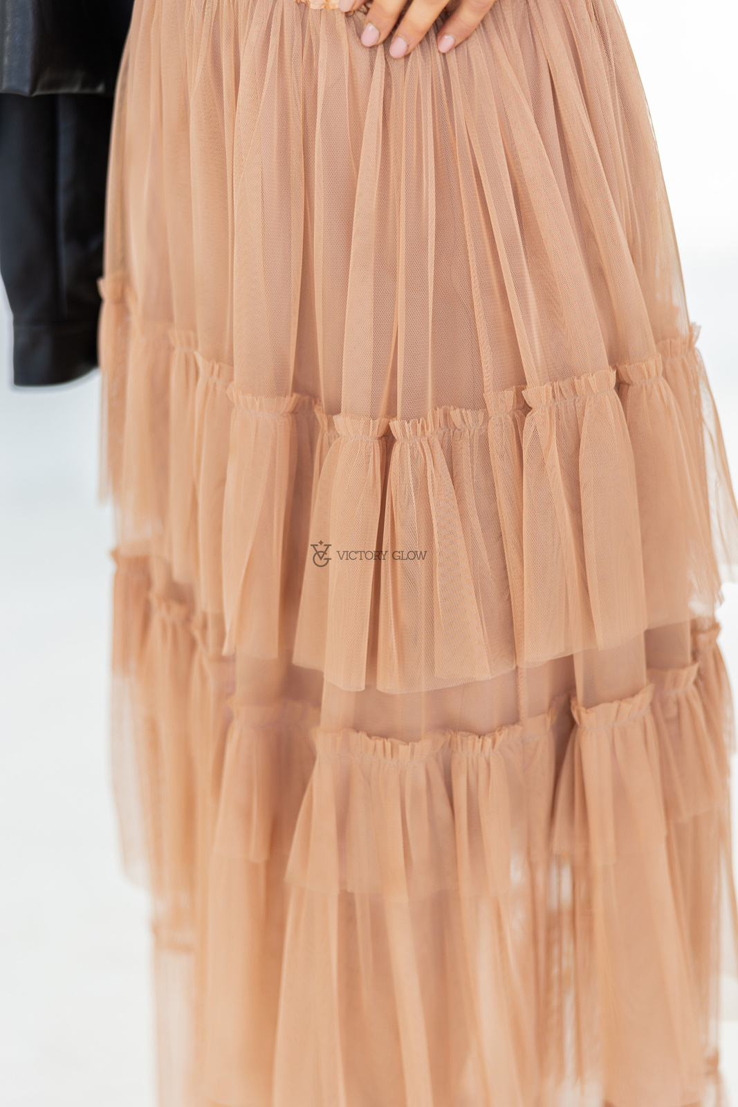 Tiulowa spódnica z falbanami Kiara  karmelowa